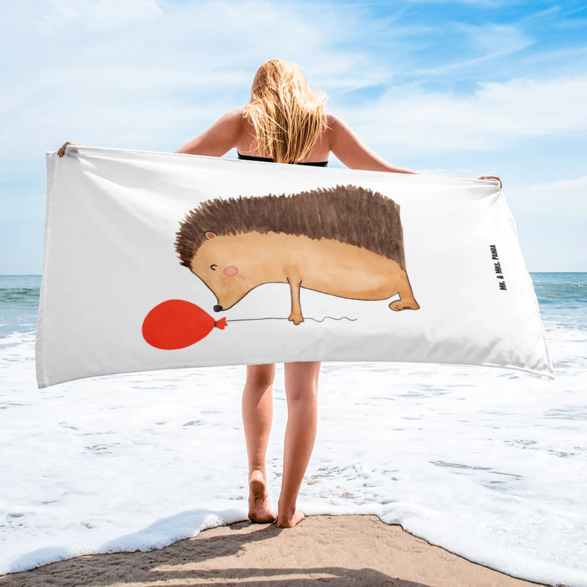 Das XL Badehandtuch mit dem bezaubernden Igel und Luftballon aus der Small World Kollektion von Mr. & Mrs. Panda ist der perfekte Begleiter für alle, die Freude und gute Laune auf ihrer Haut tragen möchten.