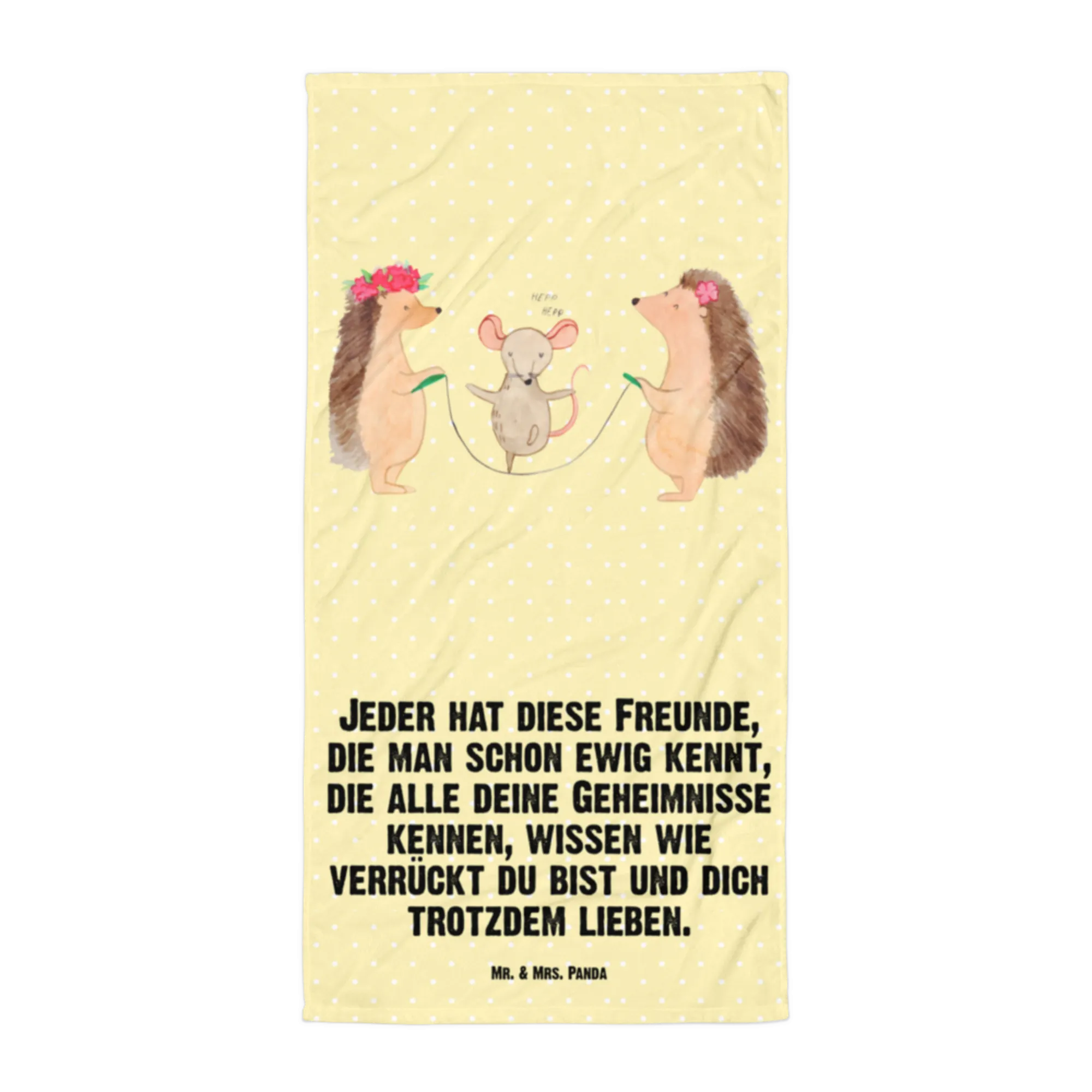 Das XL Badehandtuch mit dem liebevollen Motiv "Igel Seilhüpfen" aus der besonderen Small World Kollektion von Mr. & Mrs. Panda ist das perfekte Geschenk für alle Tierliebhaber und Familien. Es ist nicht nur wunderschön, sondern auch äußerst praktisch und langlebig.