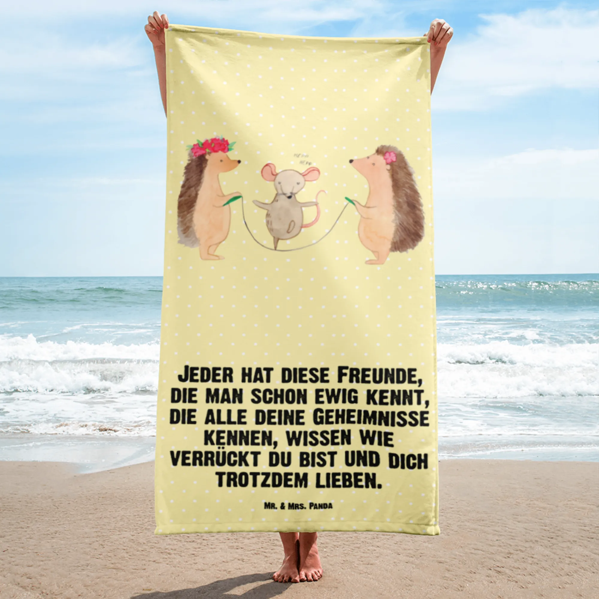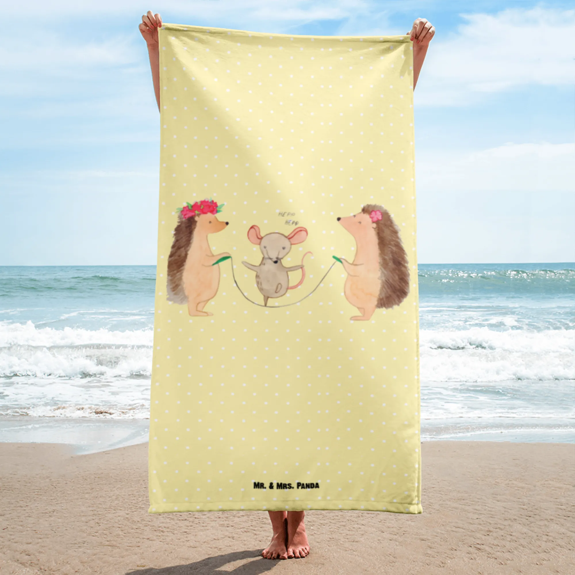 XL Badehandtuch Igel Seilhüpfen - mit Spruch - Gelb Pastell