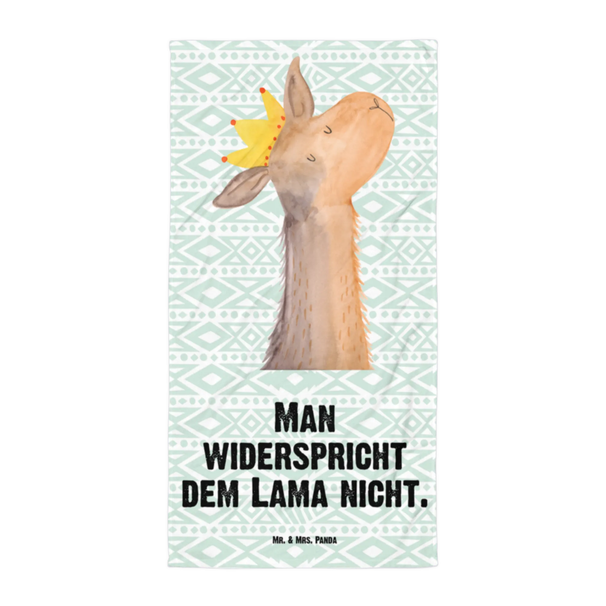 XL Badehandtuch Lamakopf König - mit Spruch - Aztekenblau