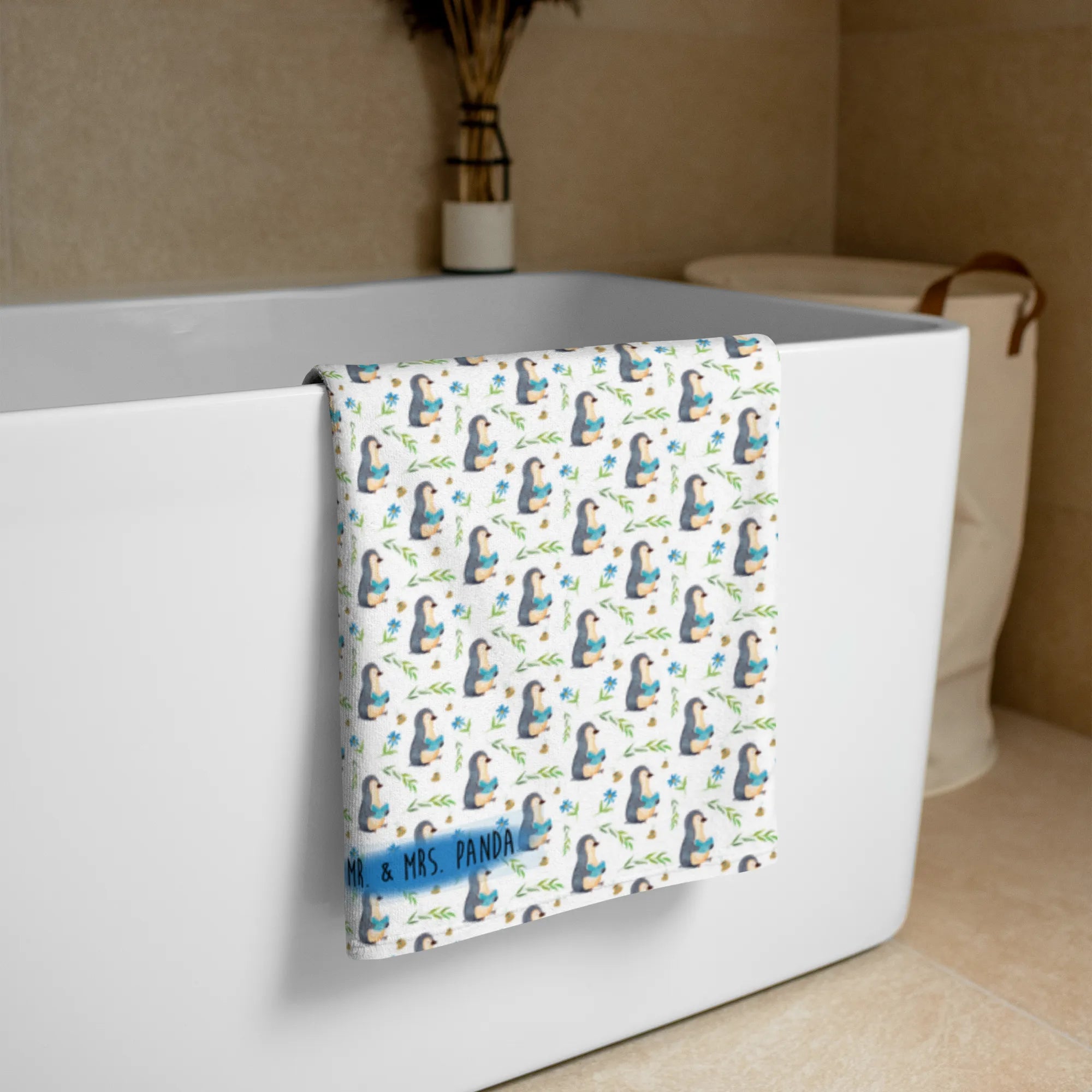 Das XL Badehandtuch "Pinguin Buch" aus der Pinguin-Kollektion von Mr. & Mrs. Panda ist das perfekte Accessoire für alle, die das Lesen lieben und ihre entspannenden Momente am Strand, im Schwimmbad oder in der Sauna genießen möchten.