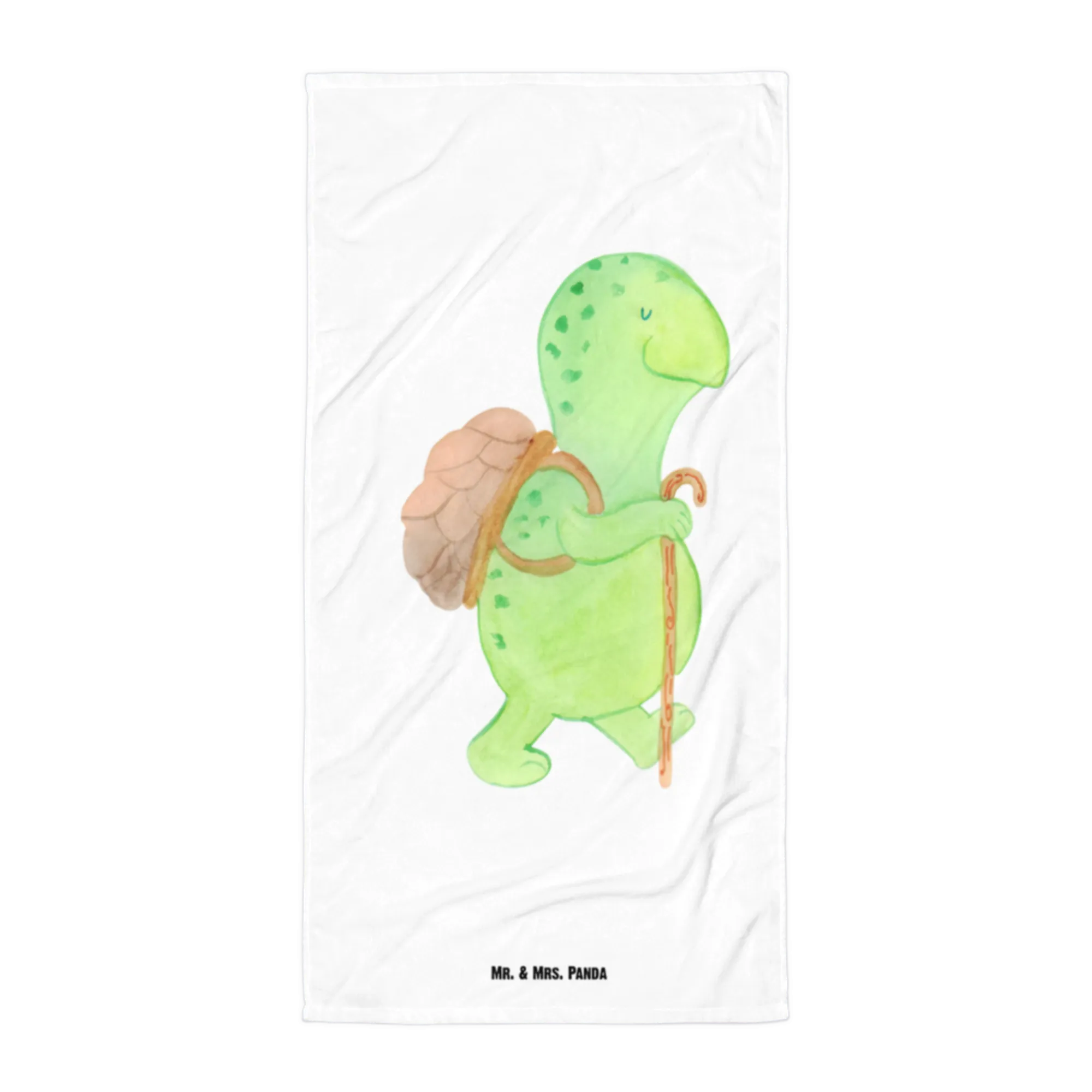 Das XL Badehandtuch Schildkröte Wanderer von Mr. & Mrs. Panda ist der perfekte Begleiter für alle Wasserratten und Strandliebhaber! Mit seinen großzügigen Maßen von 1520 mm x 760 mm bietet es ausreichend Platz zum Entspannen am Strand oder im Schwimmbad. Dieser absolute Blickfang ist bunt bedruckt mit einer niedlichen Schildkröte, die mit ihrem kleinen Rucksack und Gehstock auf Entdeckungstour geht.