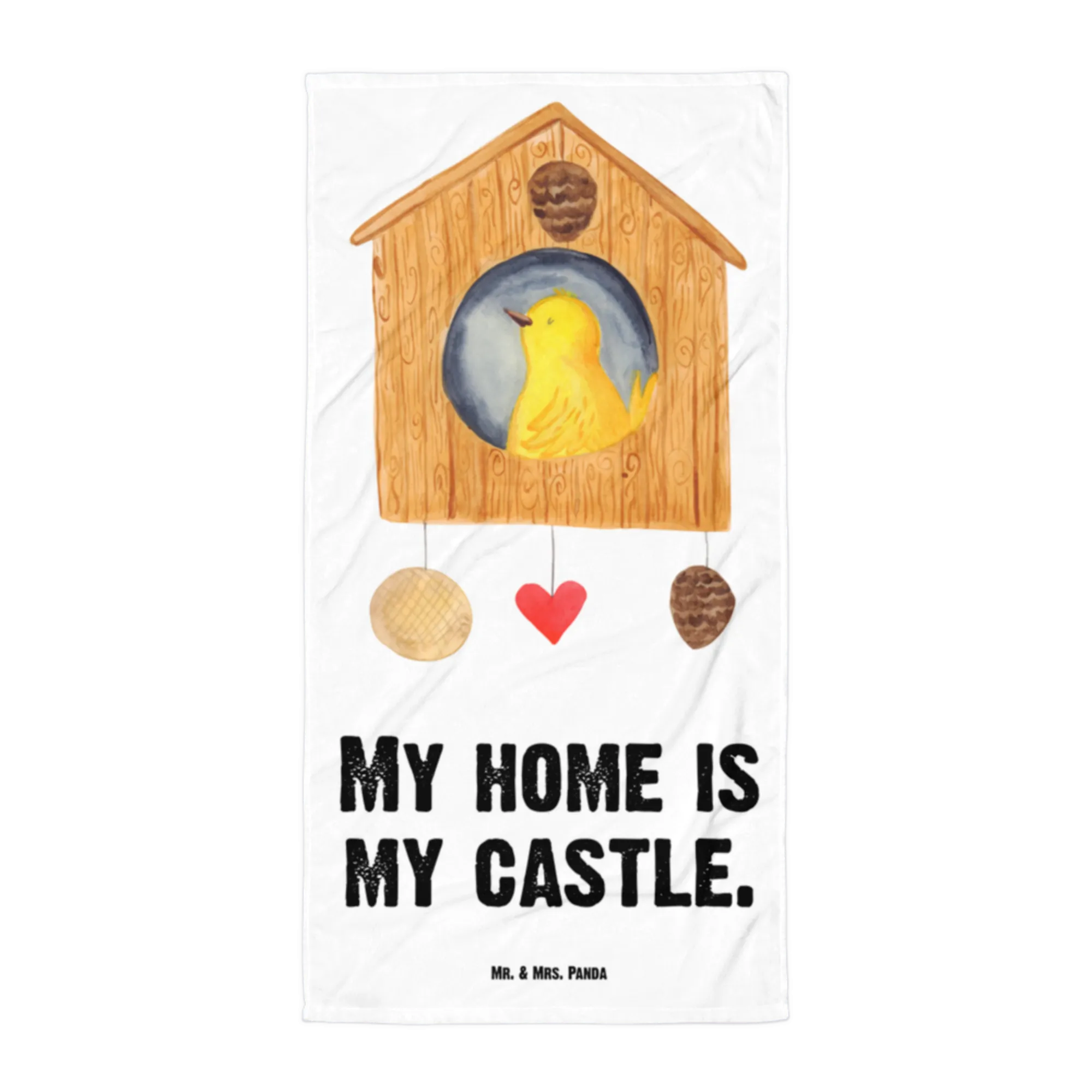 XL Badehandtuch Vogel Haus - mit Spruch - Gelb Pastell