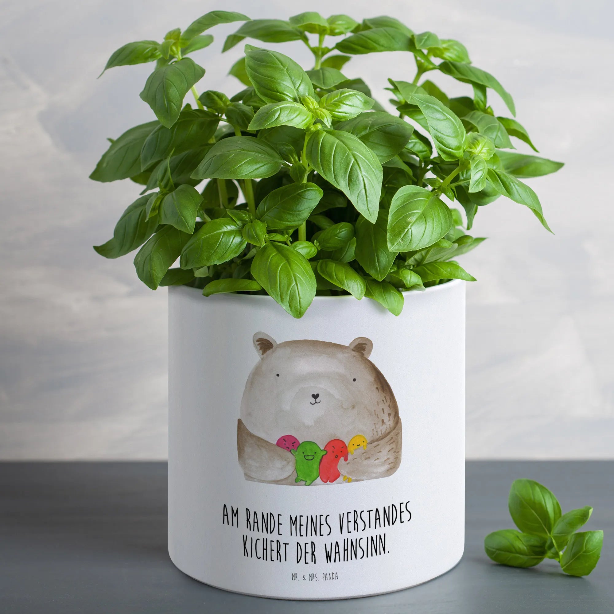 Der XL Blumentopf "Bär Gefühl" von Mr. & Mrs. Panda ist das perfekte Geschenk für all jene, die das Besondere lieben und ihre Pflanzen mit viel Herz umgeben möchten. Dieser liebevoll gestaltete Pflanztopf aus glänzender Keramik bringt frischen Wind in dein Zuhause und bietet Platz für die schönsten Pflanzen und Kräuter. Mit einem Durchmesser von 142 mm ist er ideal für größere Pflanzen und verwandelt jeden Balkon, jede Terrasse oder Fensterbank in eine grüne Oase. Der süße Bär auf dem Topf hält bunte Kugeln in den Händen, die seine tiefsten Gefühle ausdrücken - von Liebe über Freundschaft bis zur Sehnsucht. Er vermittelt das Gefühl von Wärme und Geborgenheit und lässt sich perfekt mit modernen Wohnkonzepten kombinieren.