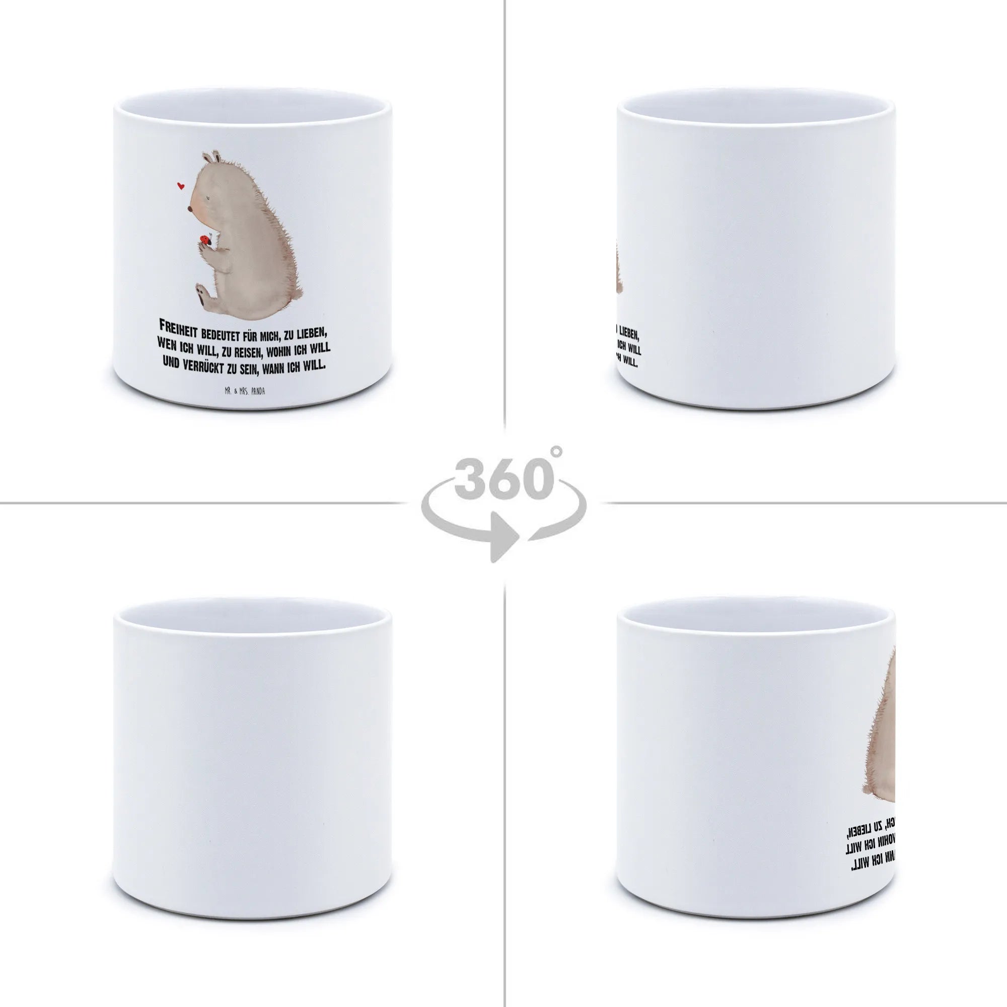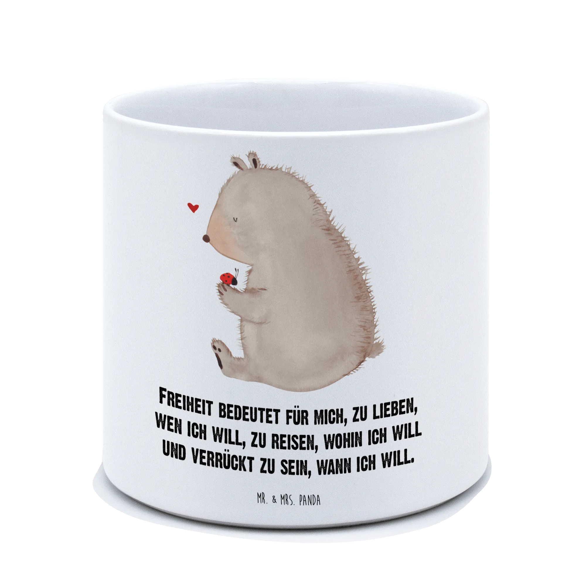 Entdecke den XL Blumentopf von Mr. & Mrs. Panda, der nicht nur ein praktisches Accessoire für deinen Balkon, deine Terrasse oder auch die Fensterbank ist, sondern auch ein echter Blickfang voller Freude! Mit einem zauberhaften Motiv eines Bären und eines Marienkäfers, das von Mrs. Panda liebevoll entworfen wurde, bringt dieser Blumentopf ein Stück Natur in dein Zuhause.
