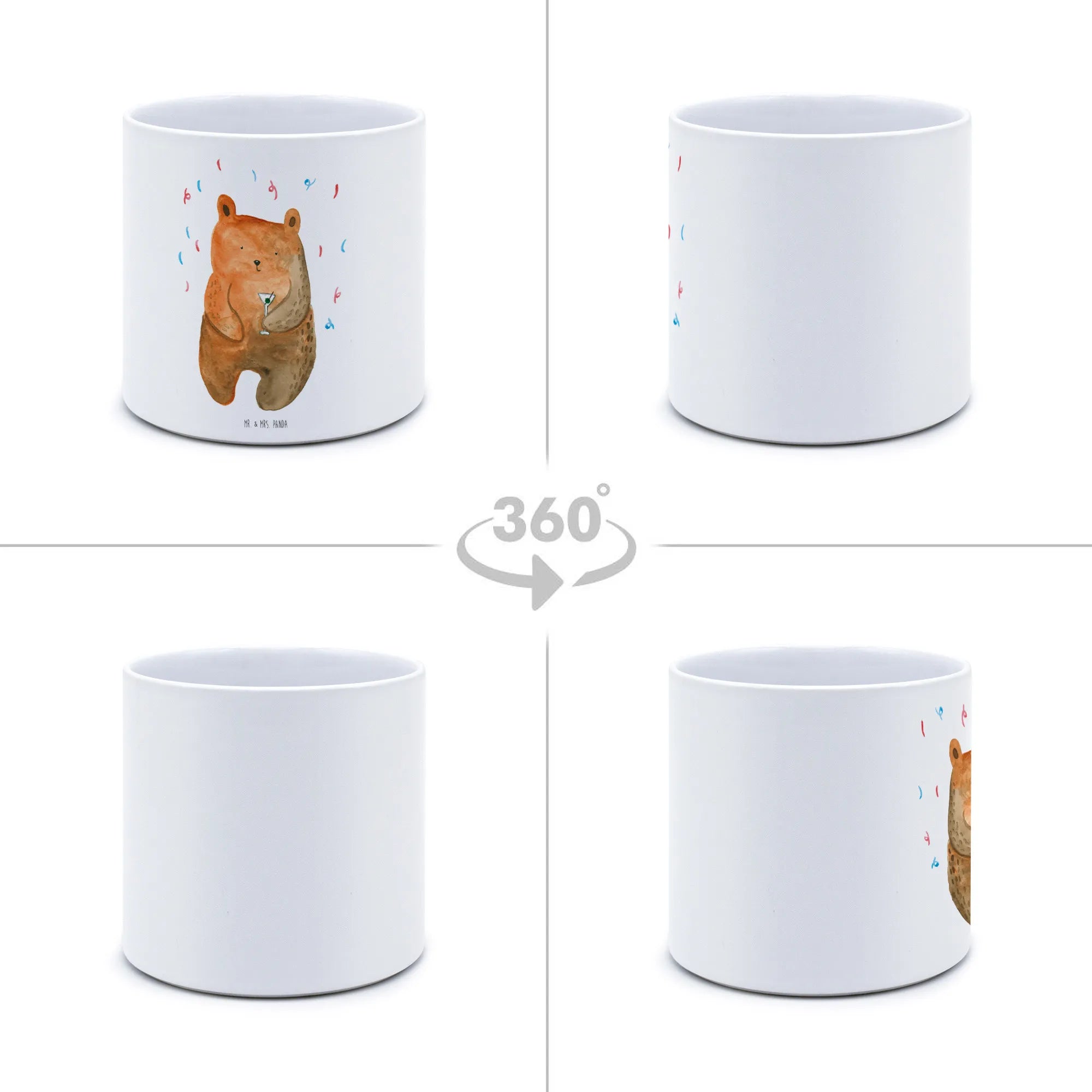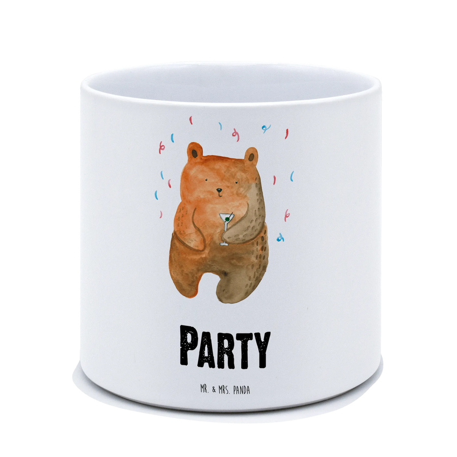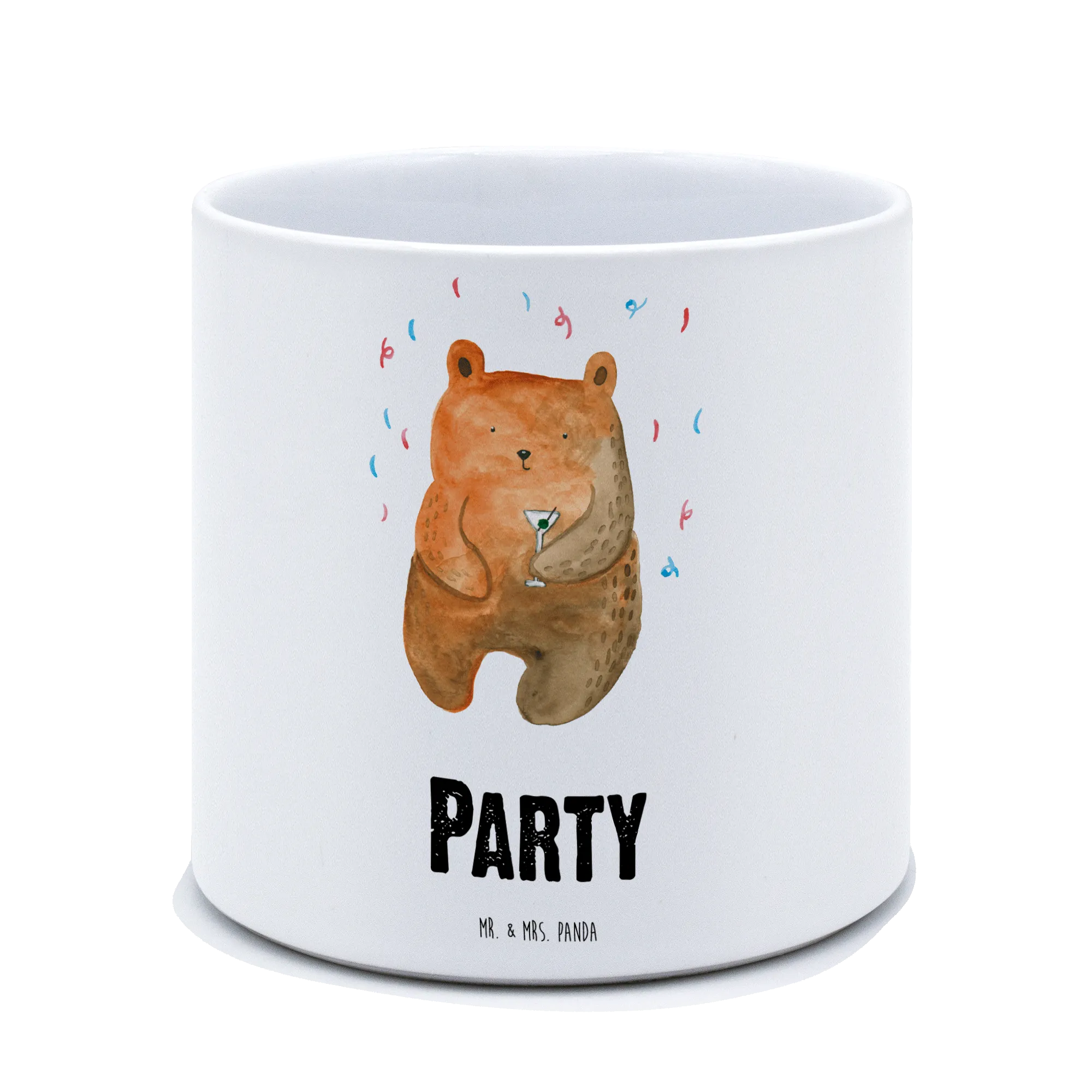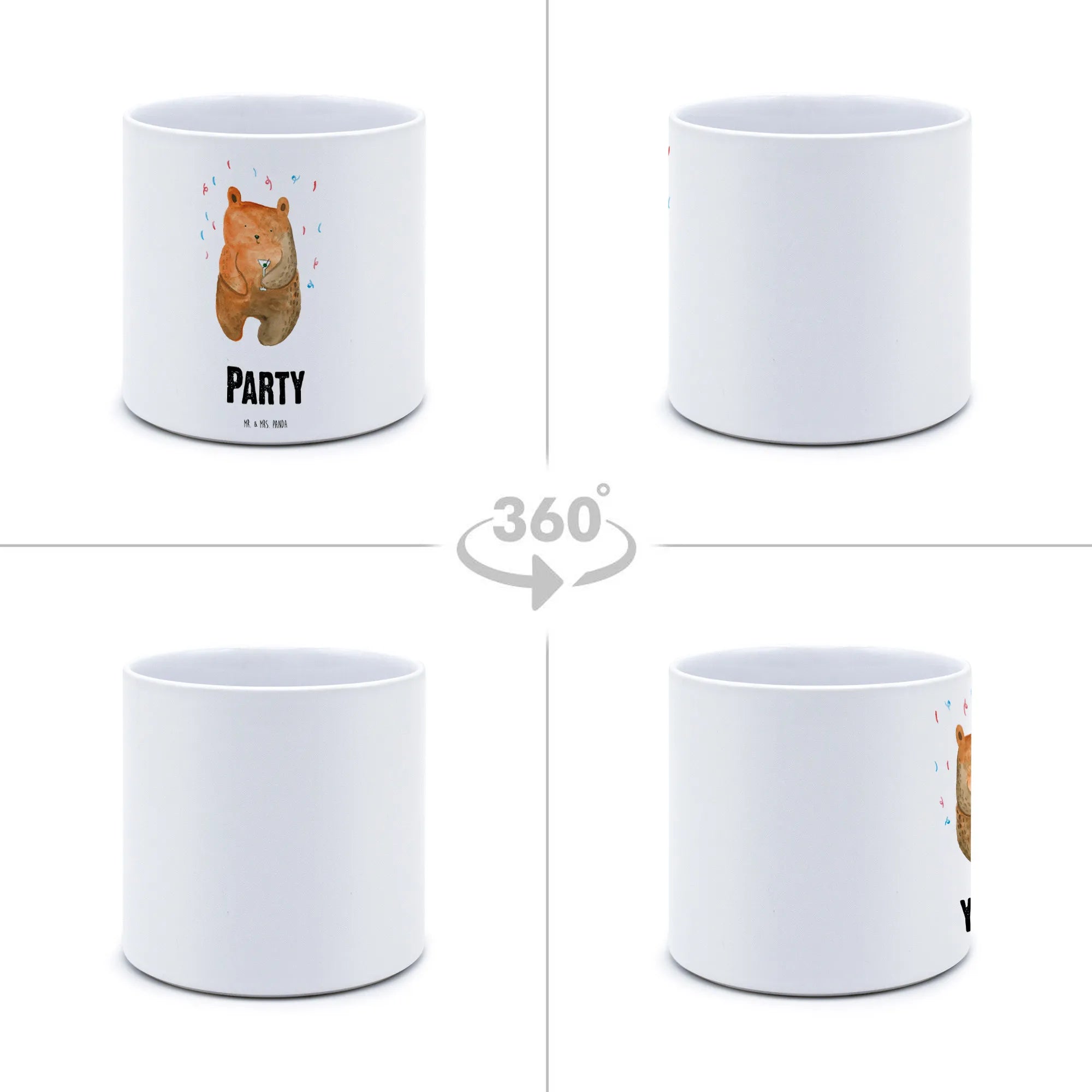 Verschenke Freude mit unserem großen Blumentopf aus der Bär Kollektion von Mr. & Mrs. Panda. Der niedliche Bär mit Partyhütchen und dem Slogan „Party“ bringt gute Laune in Wohnzimmer, auf Balkon oder Terrasse. Perfekt als Geburtstagsgeschenk, Mitbringsel zur Party oder zur Einweihung – hier trifft liebevolle Illustration auf praktischen Nutzen. 🎉🐻