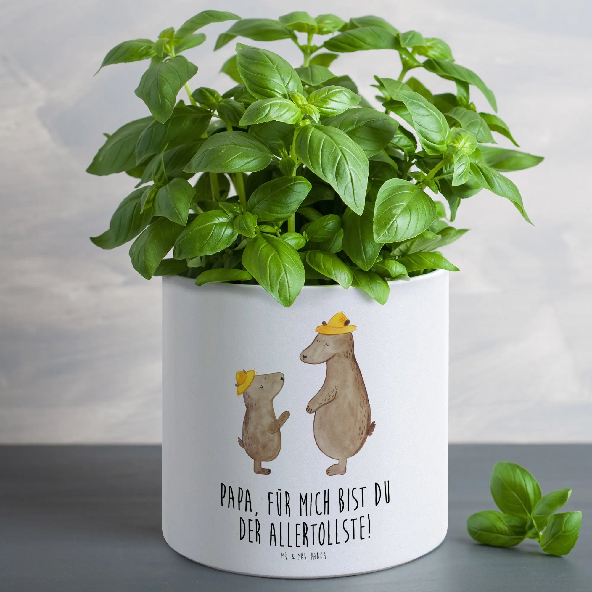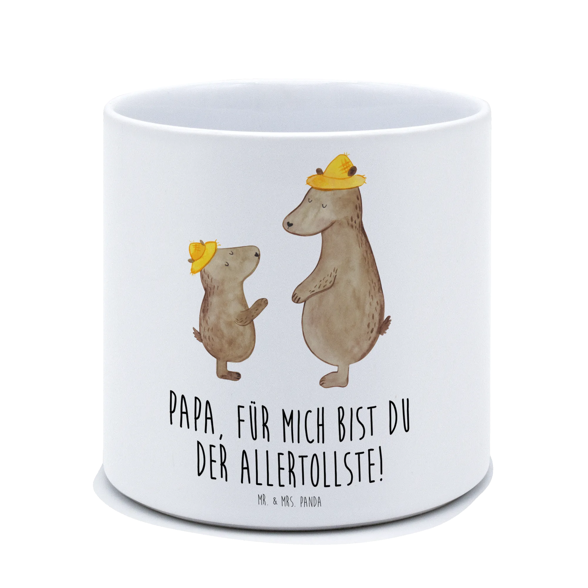 Die fröhlichen Bären mit Hut strahlen eine heitere Atmosphäre aus und verkörpern eine liebevolle Botschaft: "Papa, für mich bist du der Allertollste!". Für alle Papas, Papis, Väter oder Lieblingsmenschen ist dieser Übertopf ein absolutes Muss.