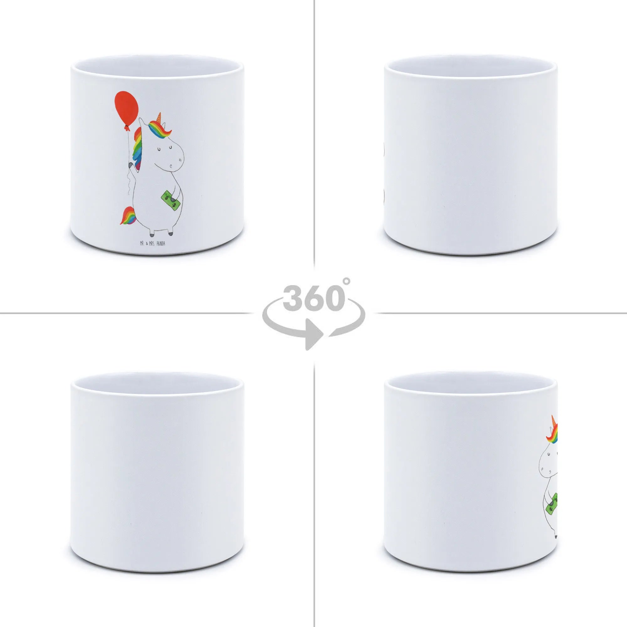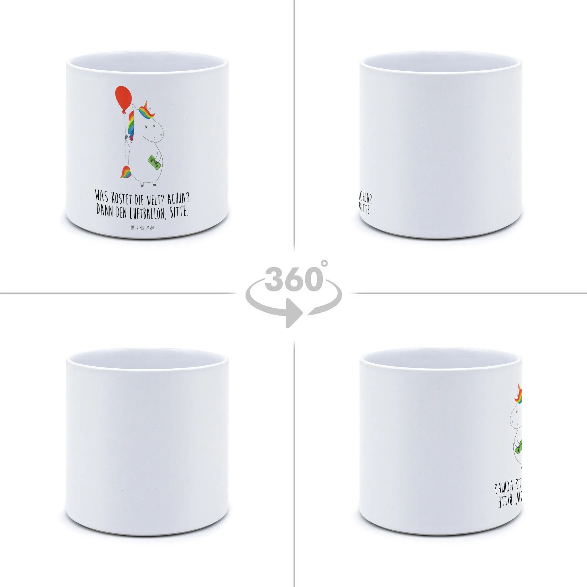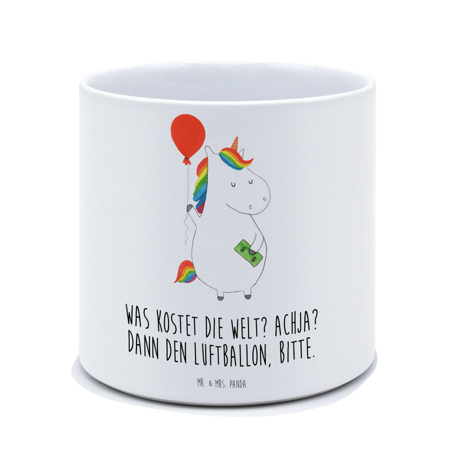 Dieser XL Blumentopf mit dem süßen Einhorn Luftballon ist nicht nur ein echter Blickfang, sondern auch das perfekte Geschenk für alle Einhornliebhaber! Egal ob für deine beste Freundin, die Mama oder als besonderes Dankeschön: mit diesem liebevoll handgezeichneten Blumentopf triffst du garantiert ins Schwarze! Die Kombination aus glänzender Keramik und dem fröhlichen Einhorn-Motiv zaubert jedem ein Lächeln ins Gesicht. Der Slogan "Was kostet die Welt? Achja? Dann den Luftballon, bitte." bringt zusätzlich eine Portion Lebensfreude in dein Zuhause!