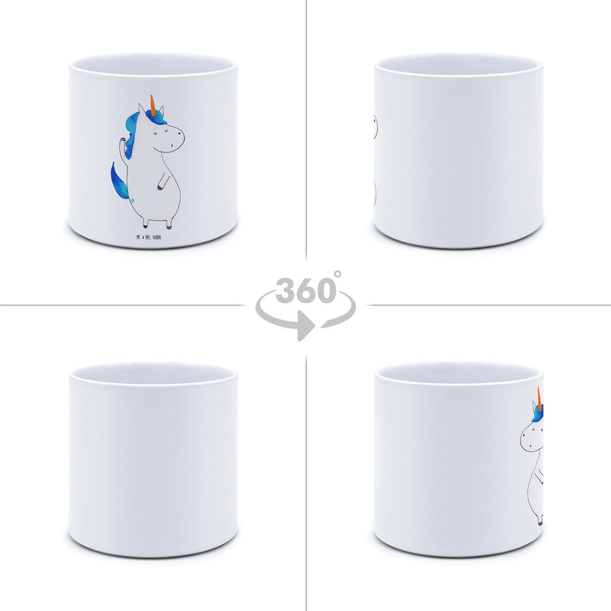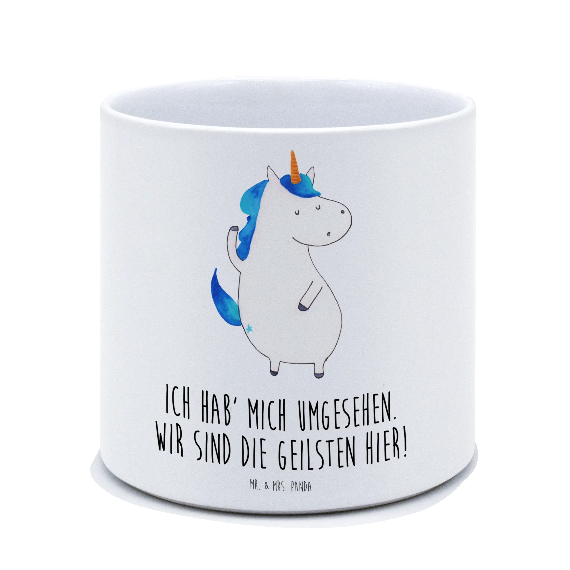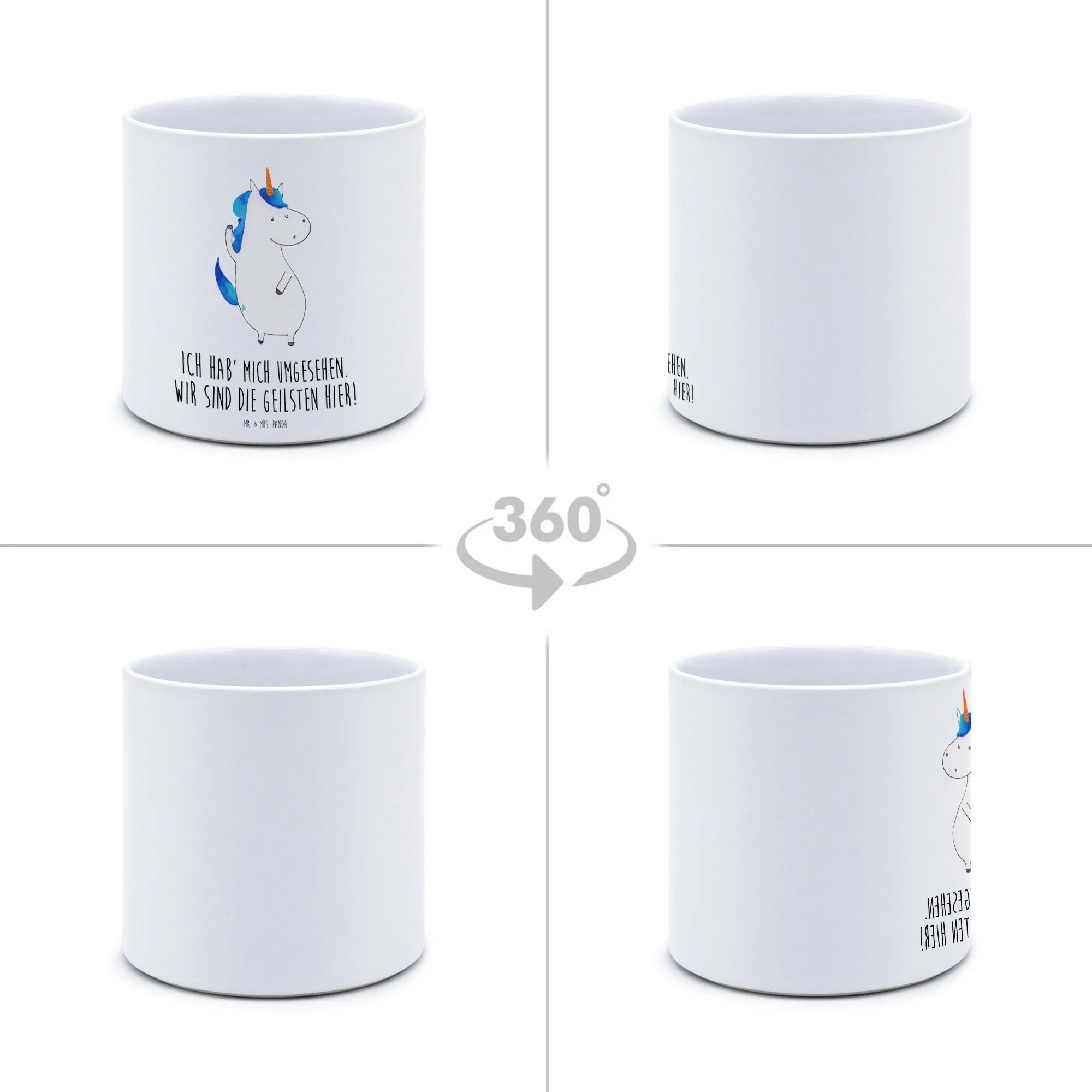 Der XL Blumentopf mit dem coolen Einhorn Mann Motiv von Mr. & Mrs. Panda ist das perfekte Geschenk für all die Einhorn-Fans da draußen! Ob du ihn für deine beste Freundin, deinen besten Freund oder für dich selbst kaufst, dieser Pflanztopf ist nicht nur praktisch, sondern auch ein echter Hingucker. Mit einem Durchmesser von 142 mm und einer Höhe von 135 mm ist er besonders geräumig und eignet sich hervorragend für größere Pflanzen oder Kräuter.