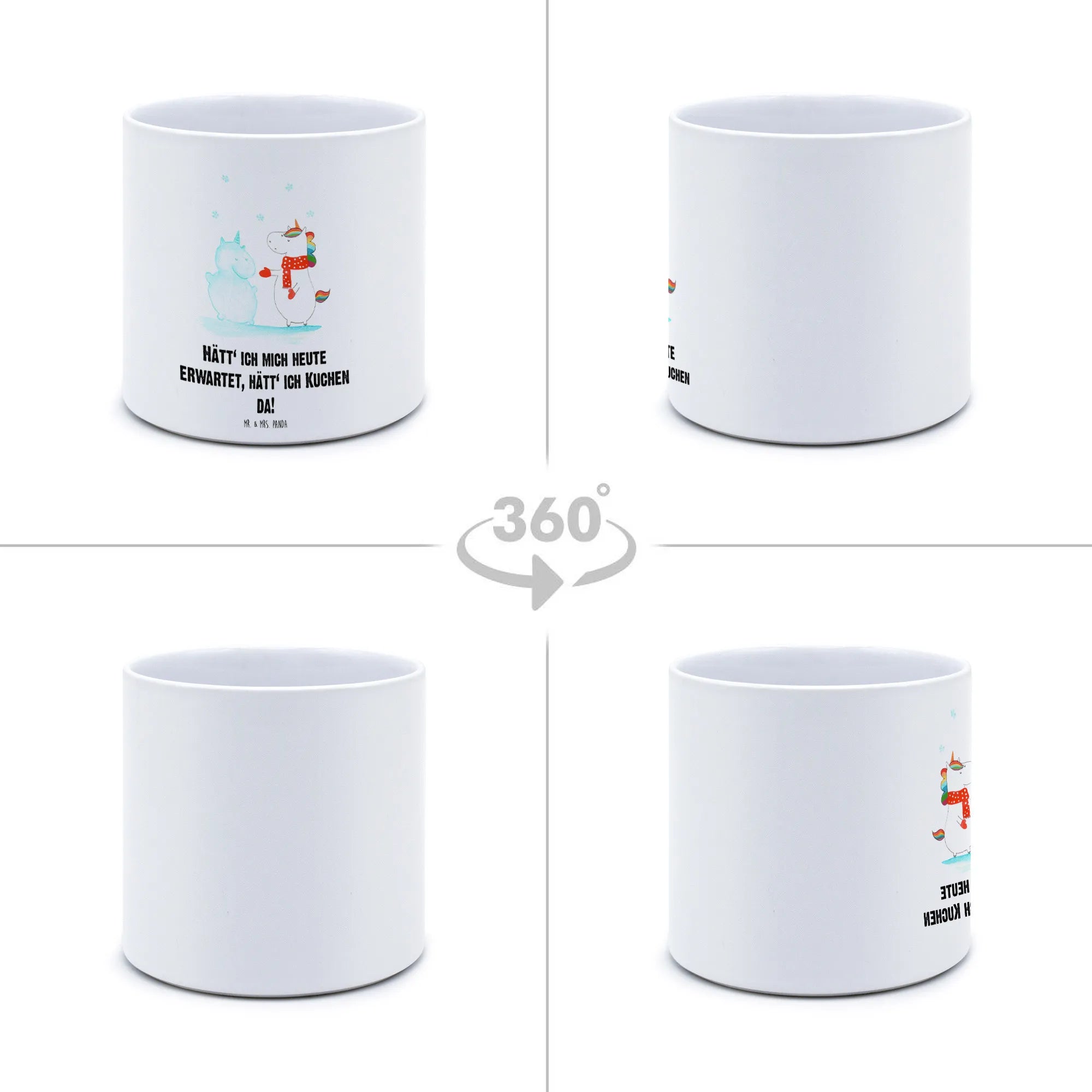 Der XL Blumentopf Einhorn Schneemann aus der zauberhaften Einhorn-Kollektion von Mr. & Mrs. Panda ist der perfekte companion für alle Blumenkinder und Einhorn-Fans! Mit seinem einzigartigen Design und der liebevollen Zeichnung eines süßen Einhorns, das einen lustigen Schneemann baut, bringt dieser Keramiktopf fröhliche Weihnachtsstimmung in dein Zuhause.