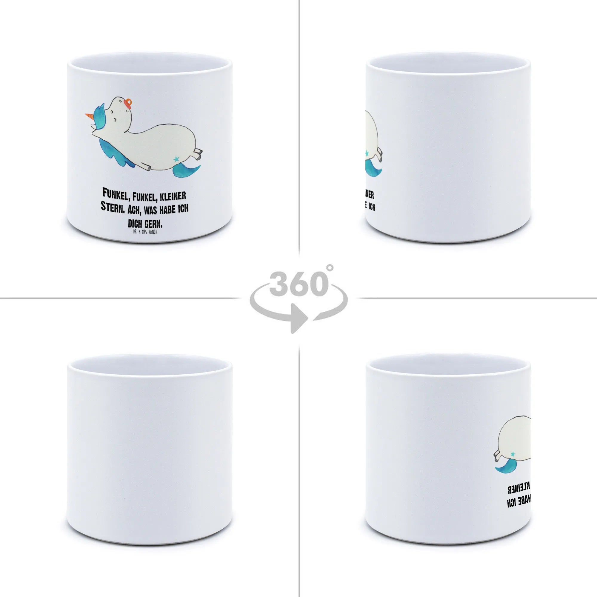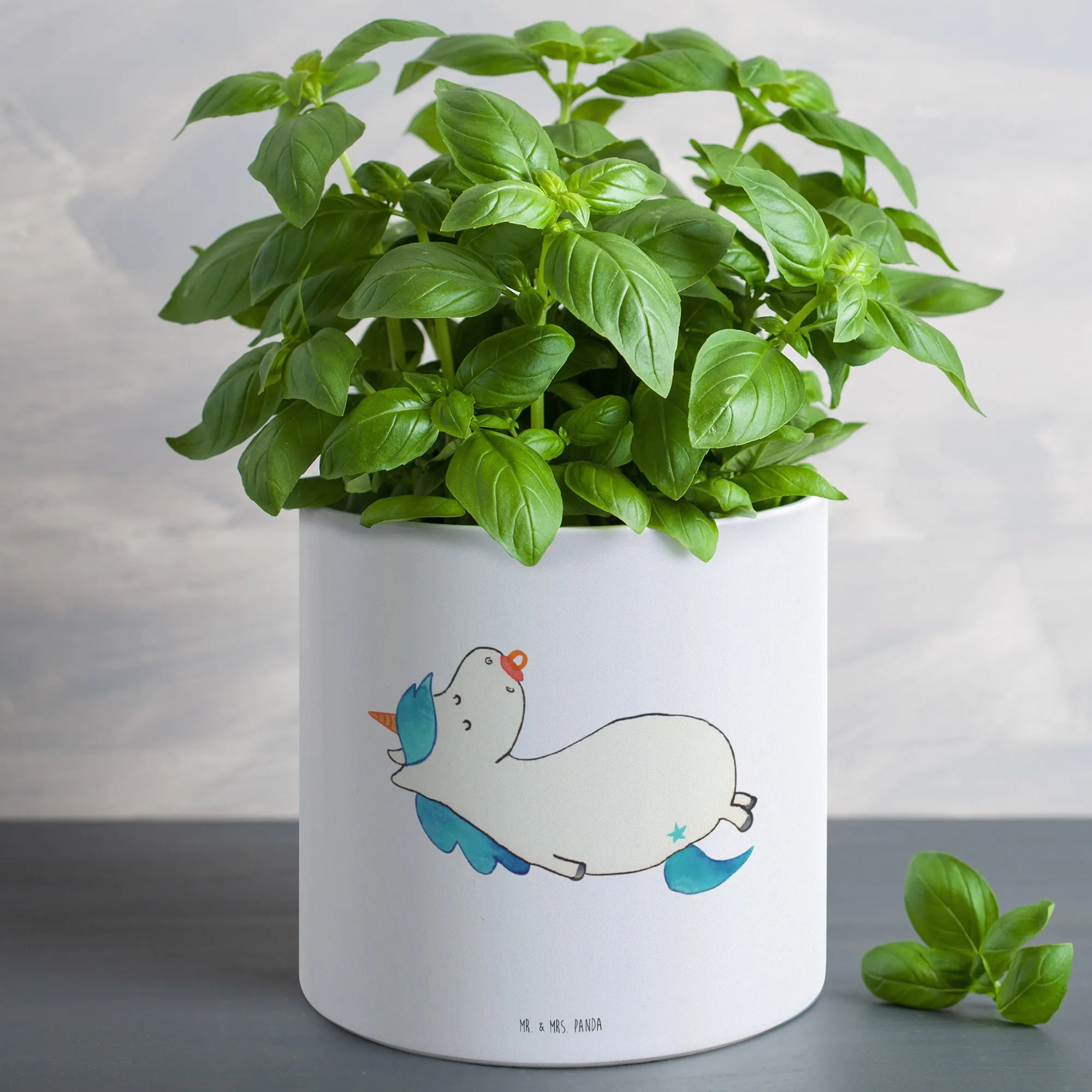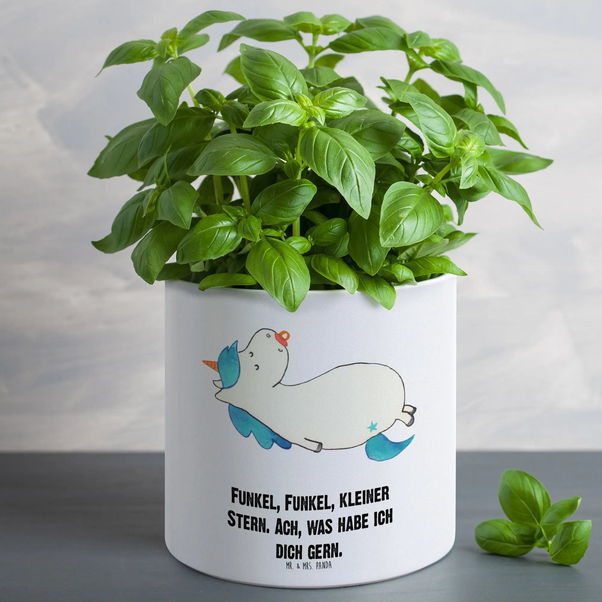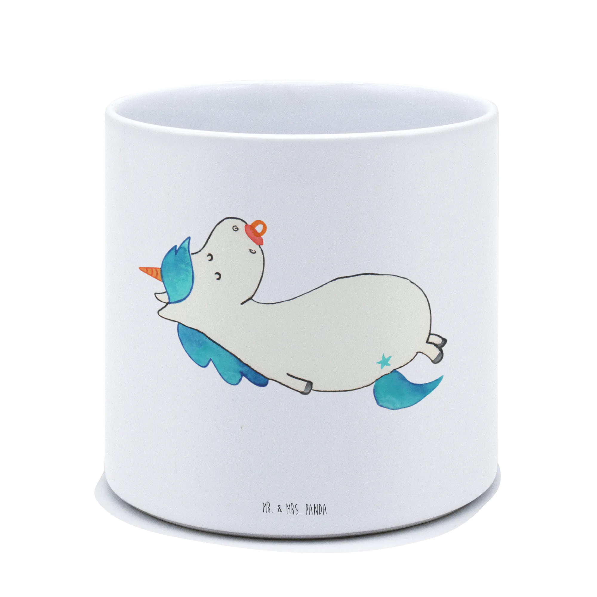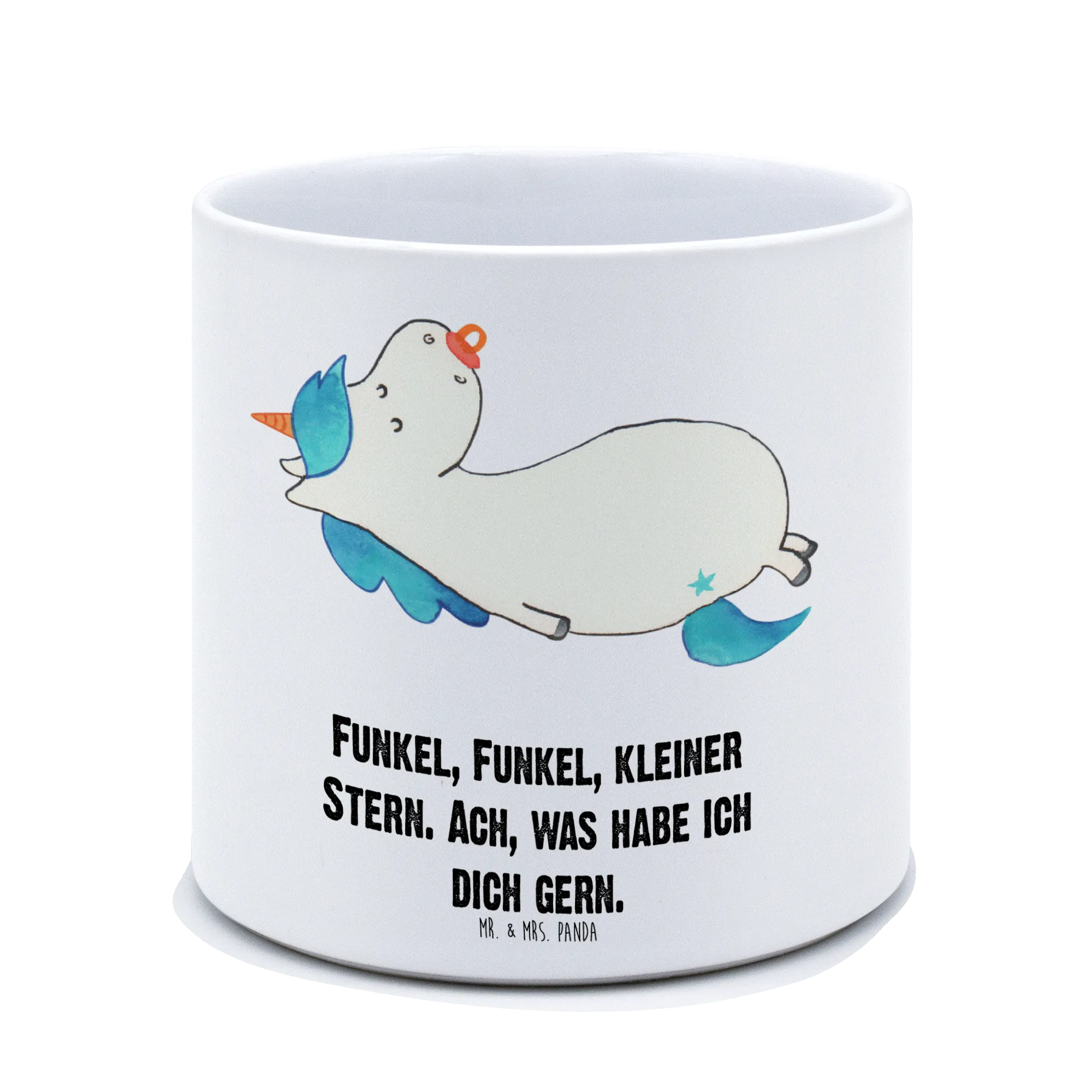 Der XL Blumentopf Einhorn Schnullie von Mr. & Mrs. Panda ist nicht nur ein praktischer Pflanzkübel, sondern auch ein absoluter Hingucker für jedes Zuhause! Mit einem Durchmesser von 142 mm und einer Höhe von 135 mm bietet er genug Platz für deine liebsten Pflanzen, ob Kräuter, Blumen oder andere grüne Begleiter!