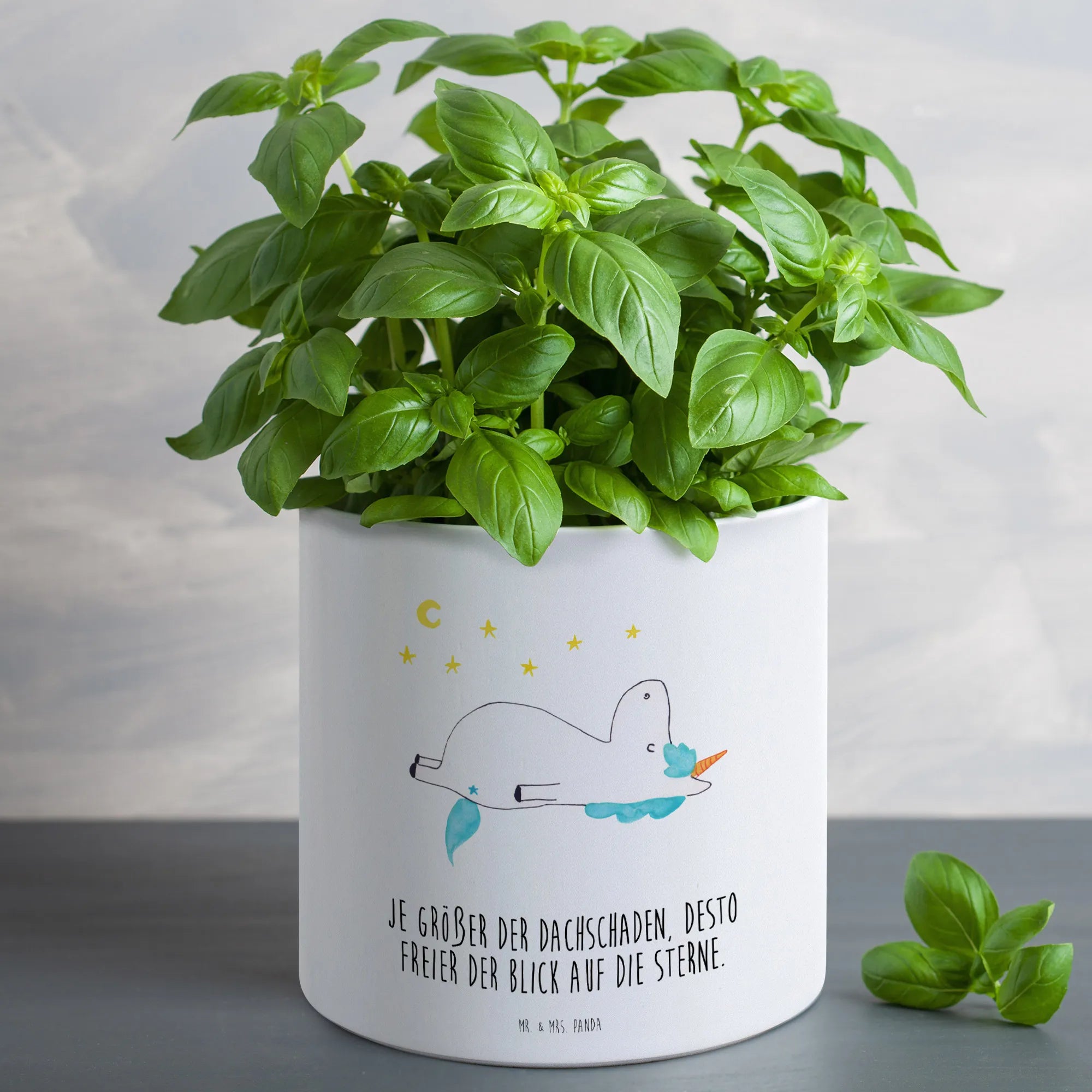 Der XL Blumentopf Einhorn Sternenhimmel von Mr. & Mrs. Panda ist der perfekte Begleiter für all diejenigen, die die Magie und den Zauber von Einhörnern lieben. Mit seinem wunderbaren und bunten Design zieht dieser Blumentopf die Blicke auf sich und bringt Freude in jeden Raum.