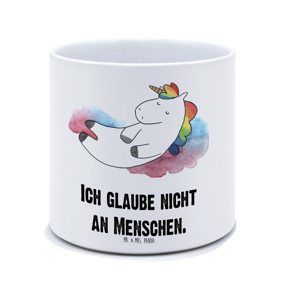 Mit seinem bezaubernden Einhorn-Motiv und dem Spruch "Ich glaube nicht an Menschen" wird dieser Pflanztopf garantiert zum Blickfang auf deinem Balkon, deiner Terrasse oder Fensterbank.