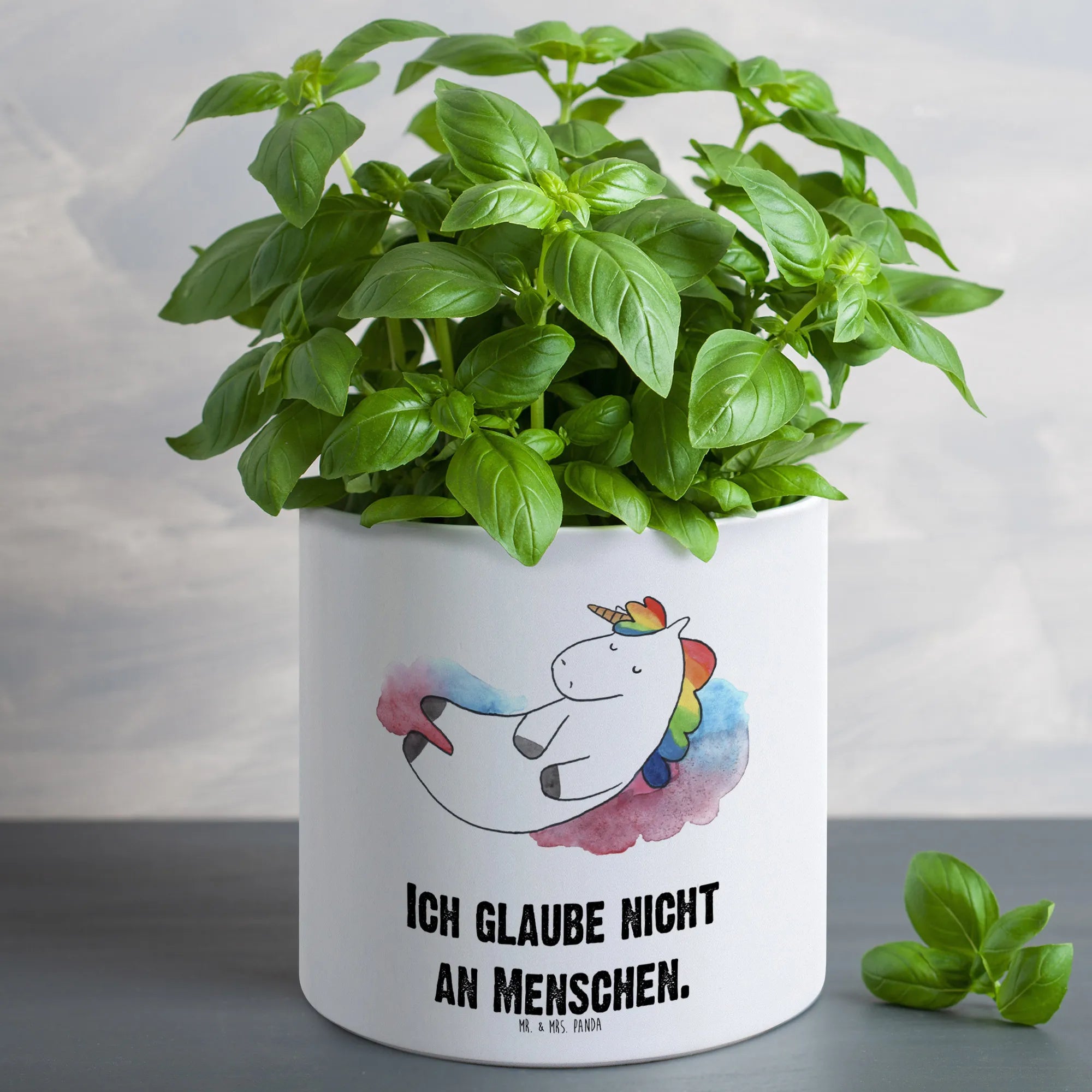 Mit seiner witzigen Darstellung und dem charmanten Motto „Ich glaube nicht an Menschen“ sorgt er für Gesprächsstoff und gute Laune. Verfügbar in der trendigen Einhorn-Kollektion von Mr. & Mrs. Panda, die für ihre liebevoll gestalteten Produkte bekannt ist, wird dieser Blumentopf bestimmt schnell zum neuen Lieblingsstück deiner Liebsten werden.