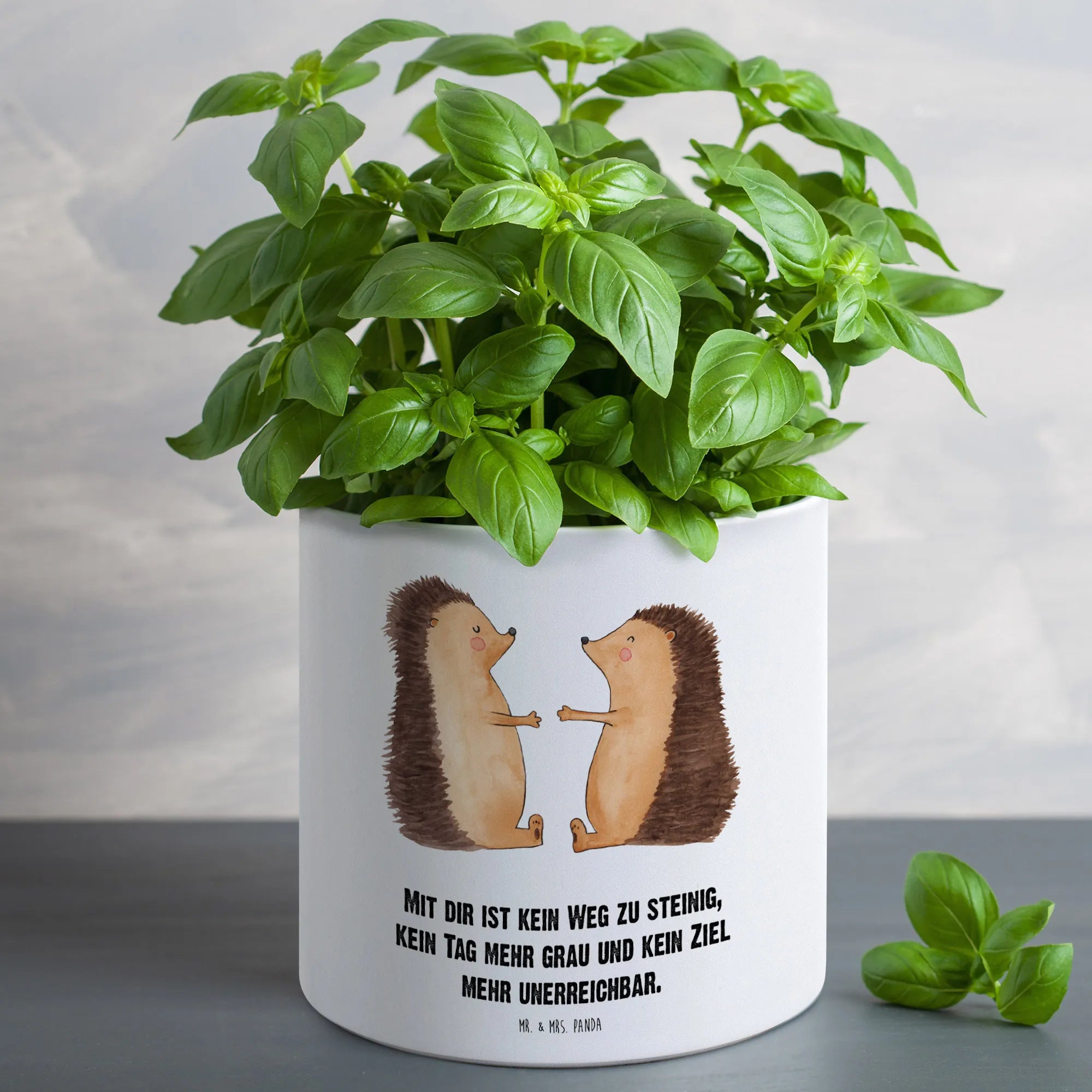 Egal, ob du ihn deinem Partner, deiner Partnerin, deinen Freunden oder deiner Familie schenkst, er wird für strahlende Gesichter sorgen! Mit seinem hübschen Design, das die verliebten Igel in zärtlicher Umarmung zeigt, ist dieser Blumentopf ein echter Hingucker. Die Igelchen bringen eine herzliche Botschaft mit: "Mit dir ist kein Weg zu steinig, kein Tag mehr grau und kein Ziel mehr unerreichbar."