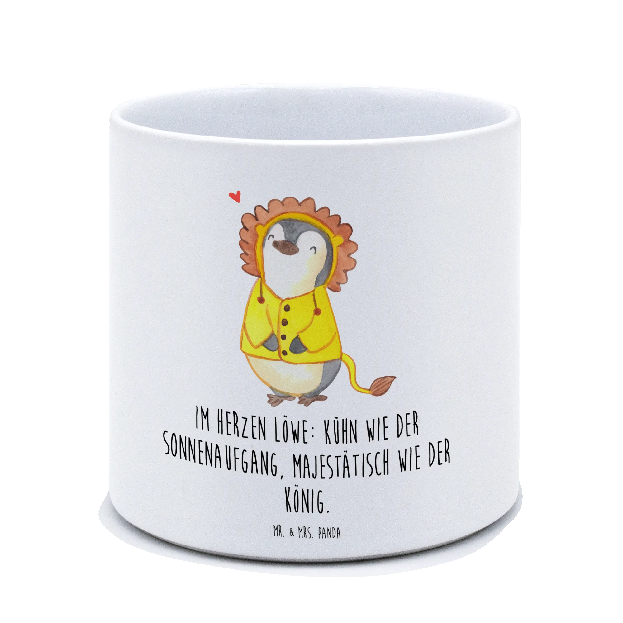 Entdecke unseren XL Blumentopf mit dem bezaubernden Löwen-Motiv aus der Sternzeichen-Kollektion von Mr. & Mrs. Panda! Dieser wunderschöne Keramiktopf hat nicht nur einen Durchmesser von 142 mm, sondern besticht auch durch sein fröhliches Design – ein Pinguin im Löwenkostüm schmückt ihn und bringt Lebensfreude in Dein Zuhause. Der Spruch 'Im Herzen Löwe: Kühn wie der Sonnenaufgang, majestätisch wie der König.' ist das i-Tüpfelchen, das den Charakter dieses einzigartigen Blumentopfs unterstreicht.