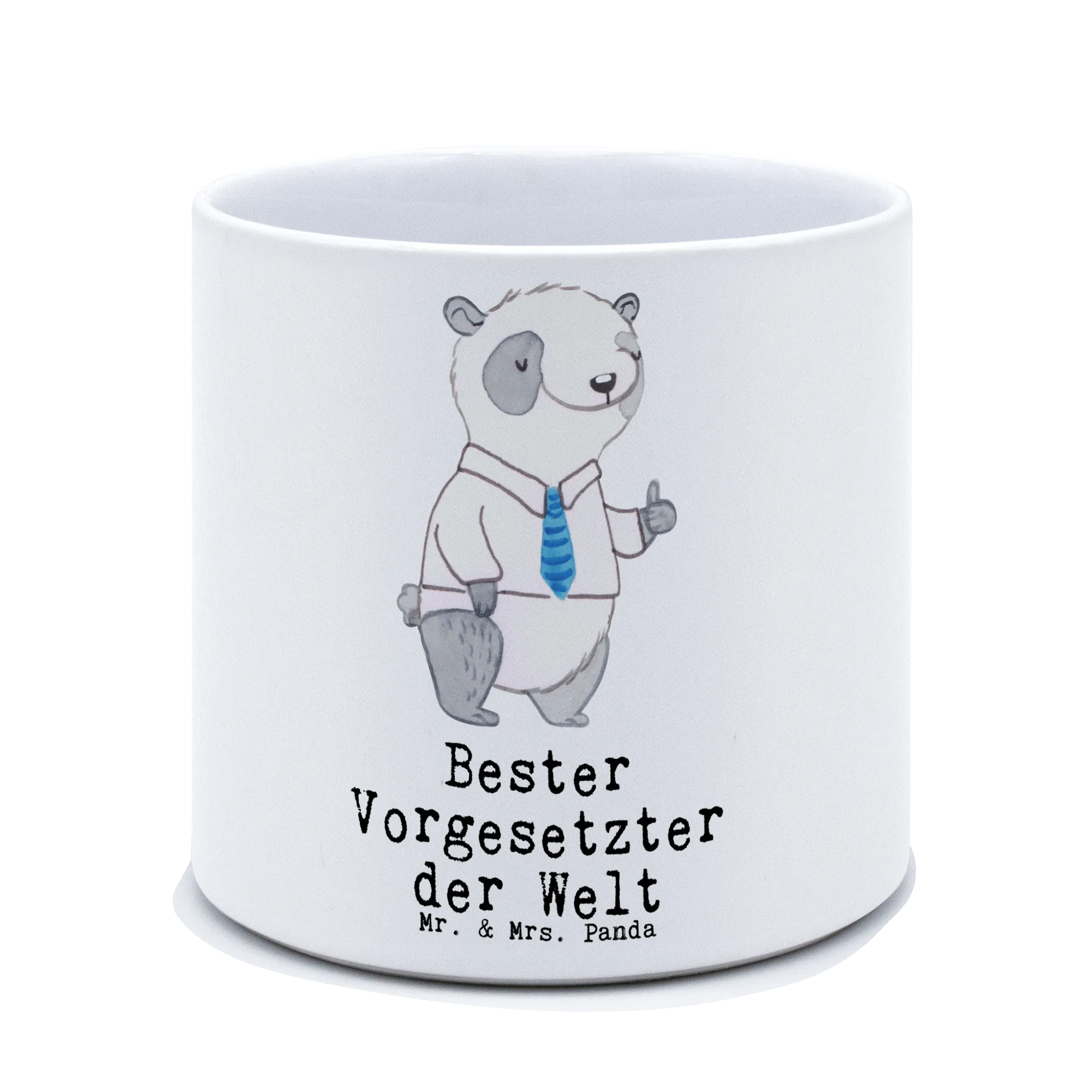 Der XL Blumentopf "Bester Vorgesetzter der Welt" von Mr. & Mrs. Panda ist das perfekte Geschenk für alle, die ihren Vorgesetzten wertschätzen. Mit einem charmanten Panda-Motiv, der in einem Hemd und mit Krawatte den Daumen nach oben hält, bringt dieser Blumentopf Freude in jedes Büro oder Homeoffice.