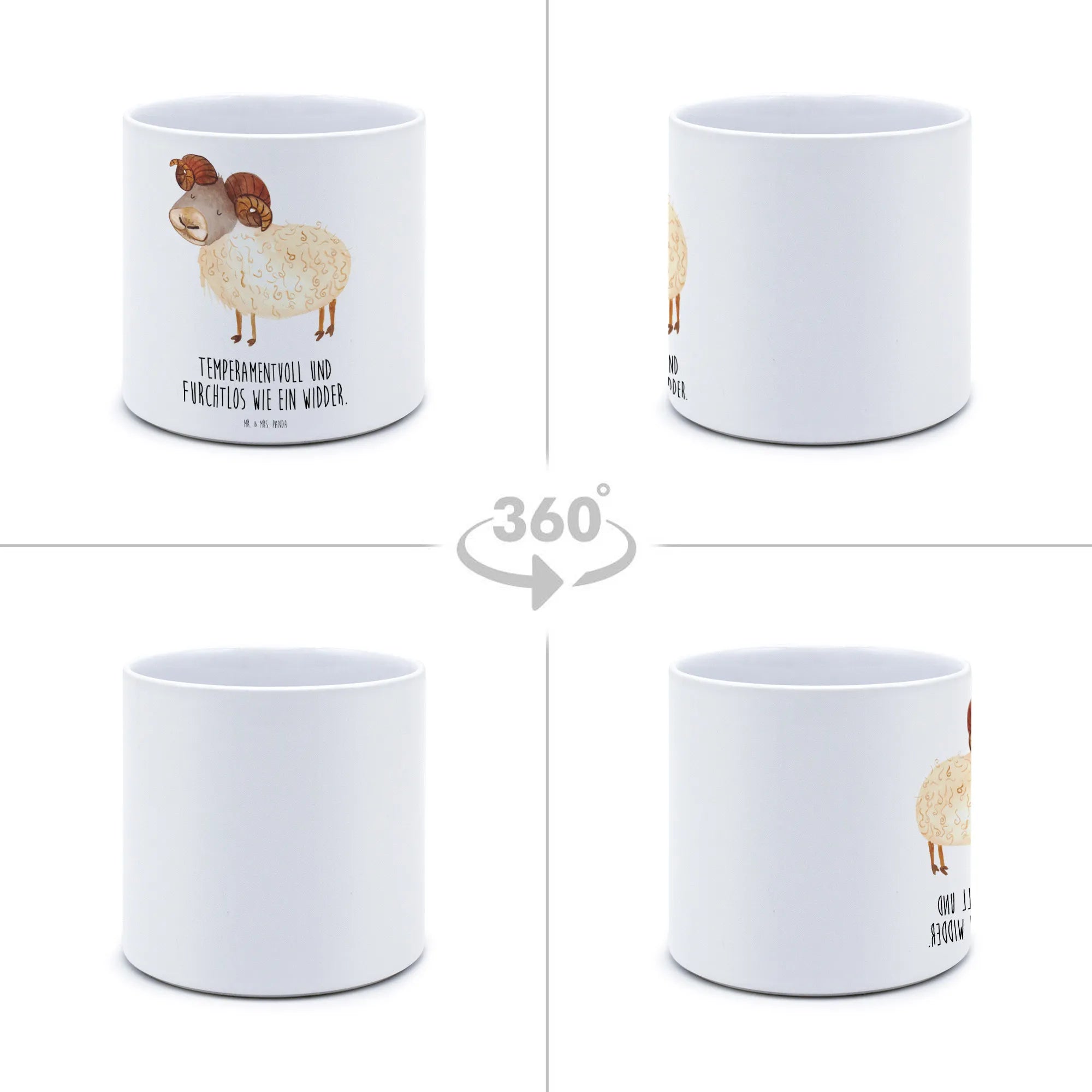 Entdecke den einzigartigen XL Blumentopf aus der Kollektion von Mr. & Mrs. Panda, perfekt für alle Sternzeichen-Fans! Mit unserem bezaubernden Motiv des Widder, dem ersten Zeichen des Tierkreises, bringst Du nicht nur Farbe in Deine Wohnung, sondern auch ein Stück Persönlichkeit. Der Widder steht für Temperament und Furchtlosigkeit – Eigenschaften, die in unserem Blumentopf durch den süßen Spruch „Temperamentvoll und furchtlos wie ein Widder.“ widergespiegelt werden.