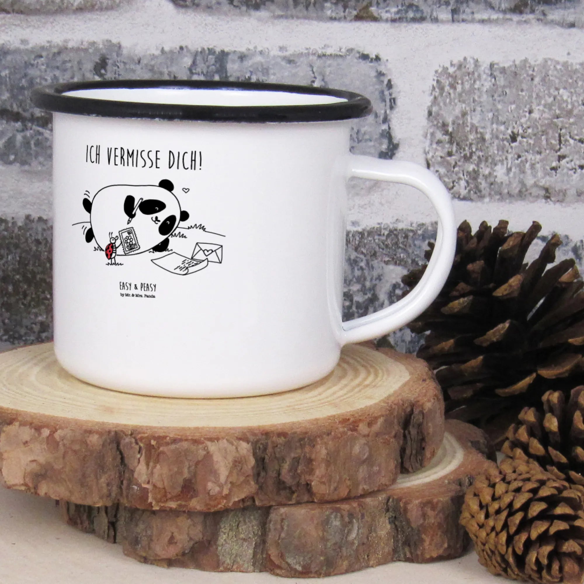 XL Emaille Tasse „Easy & Peasy – Vermissen“ von Mr. & Mrs. Panda