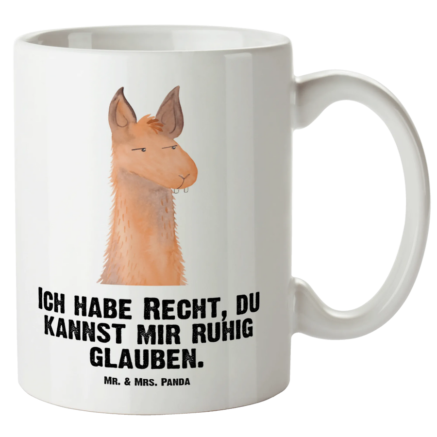 Entdecke die perfekte XL Tasse mit dem süßen Motiv "Lamakopf genervt" aus unserer beliebten Lama-Kollektion! Diese wunderschöne und edle XL Tasse von Mr. & Mrs. Panda ist nicht nur ein absoluter Hingucker, sondern auch dein bester Begleiter im Büroalltag oder beim entspannten Kaffee zu Hause.