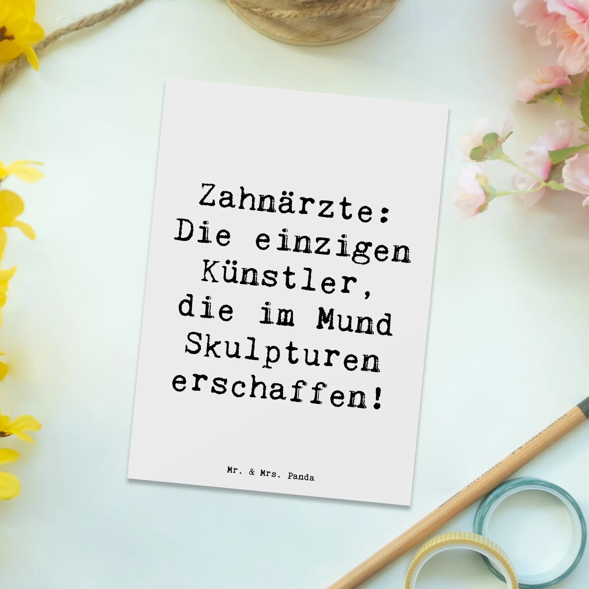 Unsere niedliche Postkarte „Zahnarzt“ aus der Berufe-Kollektion von Mr. & Mrs. Panda vereint Humor, Stil und Wertschätzung. Mit dem spritzigen Spruch „Zahnärzte: Die einzigen Künstler, die im Mund Skulpturen erschaffen!“ zauberst Du sofort ein Lächeln – ob als Geburtstagskarte, Dankeskarte, Einladung zur Praxiseröffnung oder als kleines Mitbringsel für das Praxisteam. 🎉