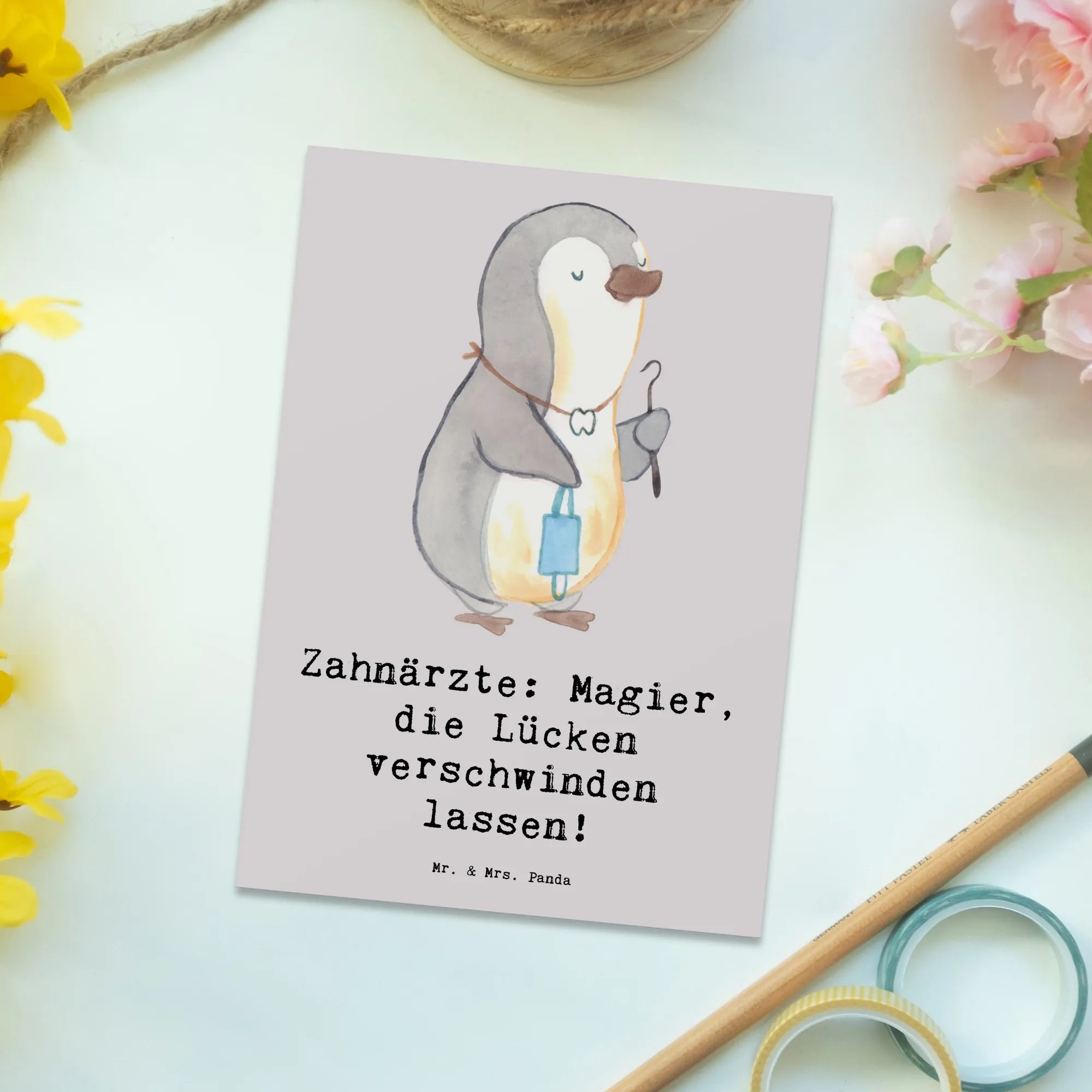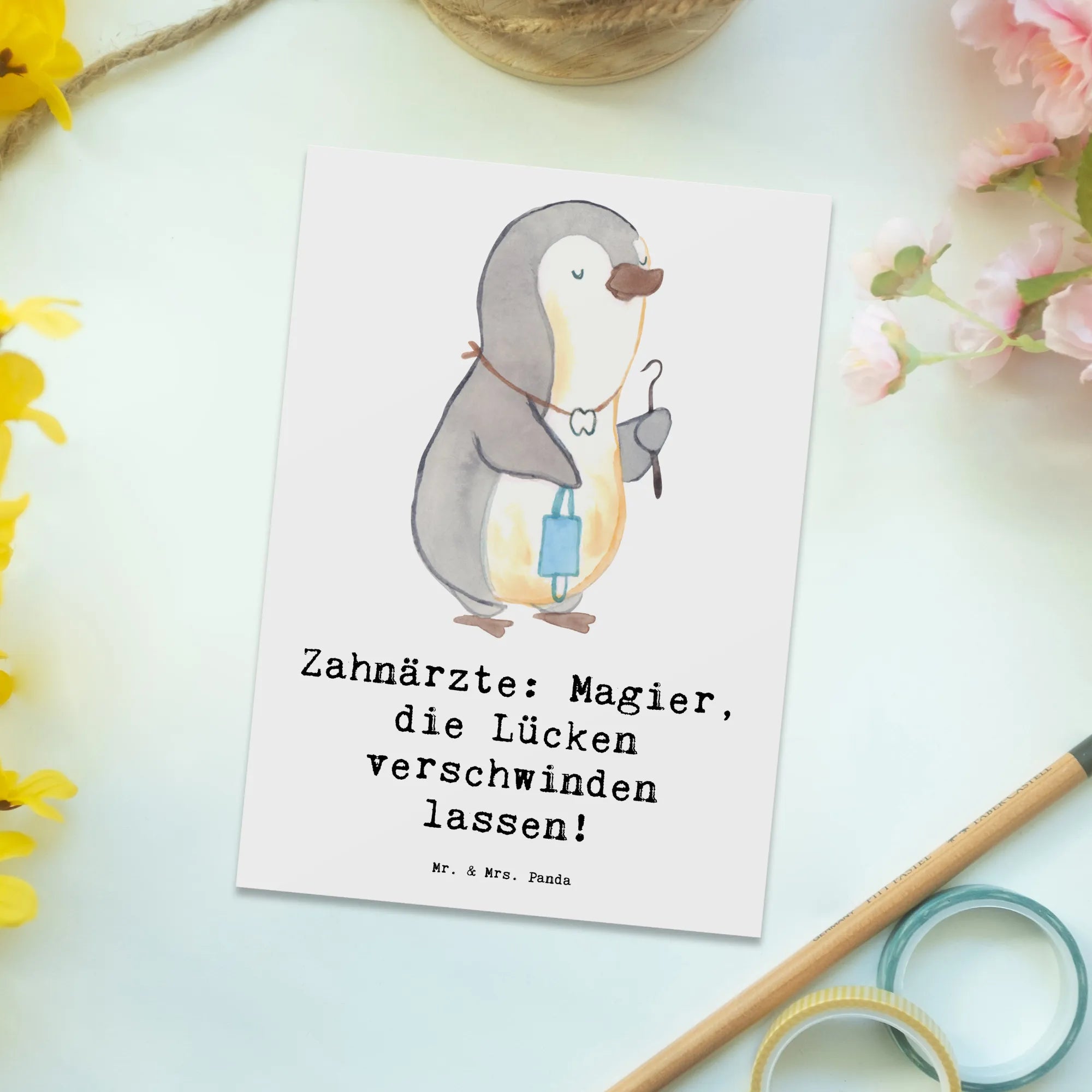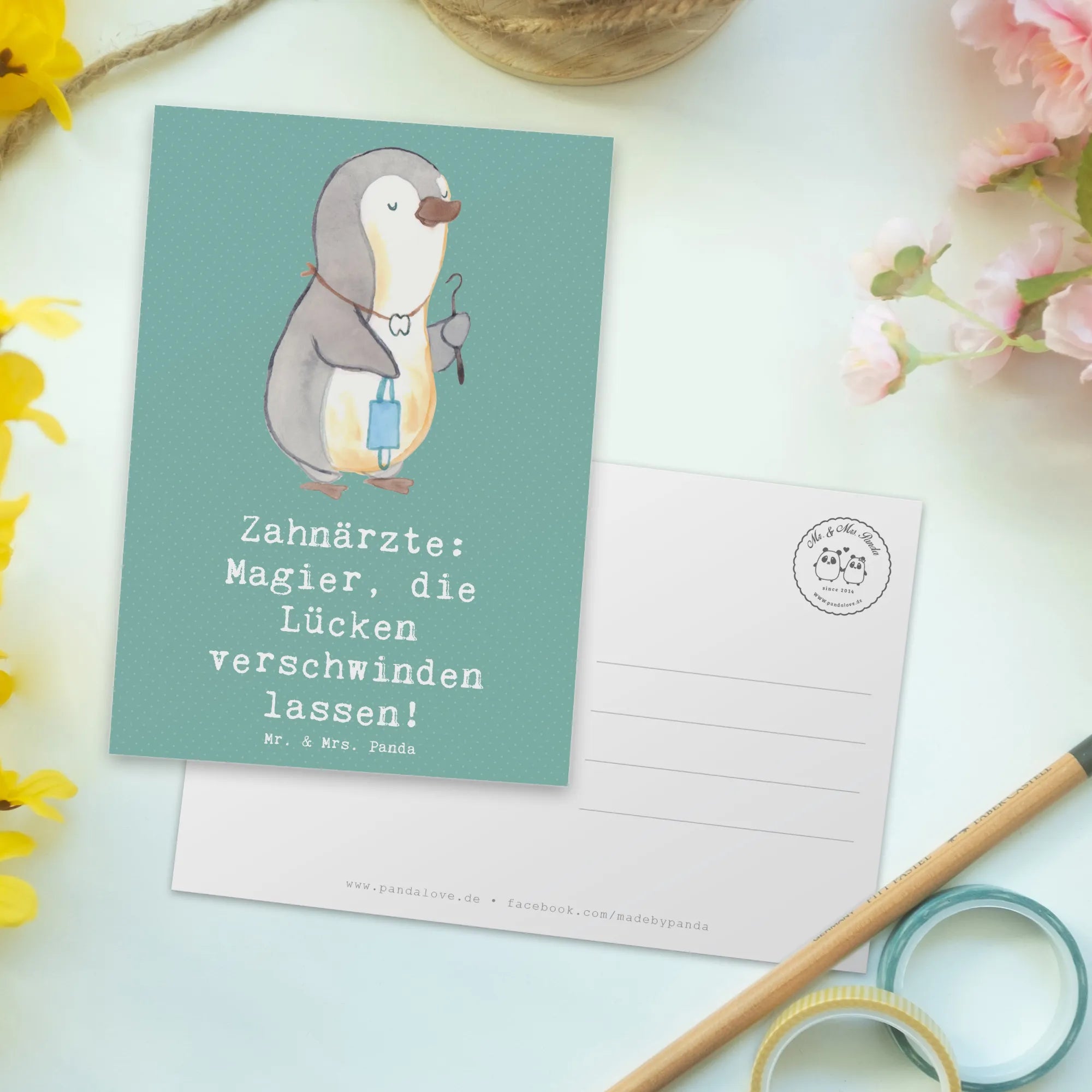 Bist du auf der Suche nach einem perfekten Geschenk für einen Zahnarzt oder eine Zahnärztin? Dann ist die Postkarte "Zahnärzte: Magier, die Lücken verschwinden lassen!" aus der liebevoll gestalteten Berufe-Kollektion von Mr. & Mrs. Panda genau das Richtige für dich! Diese einzigartige Postkarte bringt nicht nur ein Lächeln auf die Gesichter der Zahnmedizin-Profis, sondern eignet sich auch hervorragend als witzige Grußkarte oder Dankeskarte für besondere Anlässe.