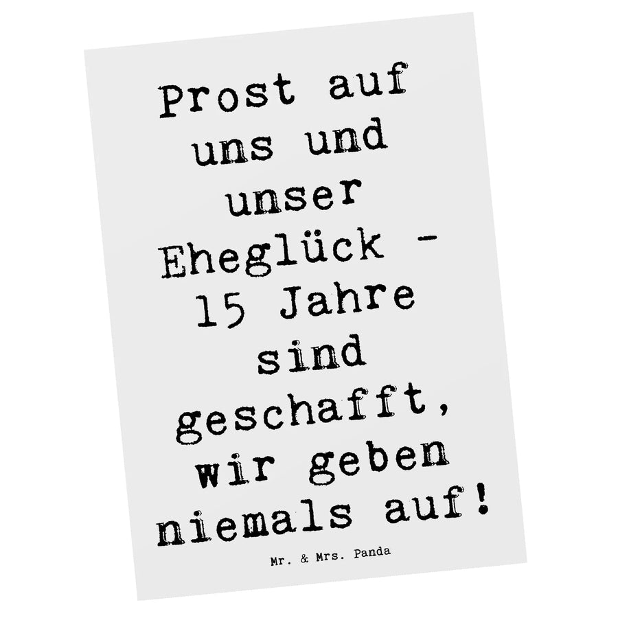 Postcard Saying Prost auf uns und unser Eheglück - 15 Jahre sind geschafft, wir geben niemals auf! - White