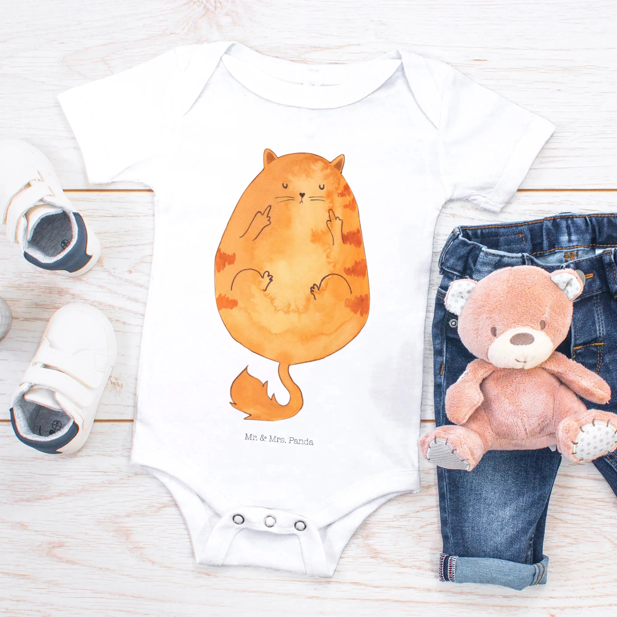 Because who wouldn’t want their baby to express their playful spirit from such a young age? Mr. & Mrs. Panda's Cat Middle Finger Organic Baby Body isn’t just clothing; it’s a conversation starter, a gift that keeps on giving, and a timeless piece that captures the essence of feline fun!