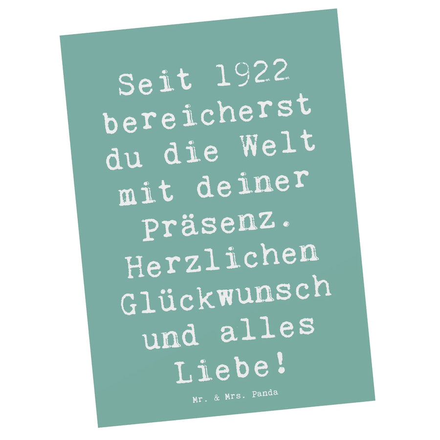 Postcard Saying Seit 1922 bereicherst du die Welt mit deiner Präsenz. Herzlichen Glückwunsch und alles Liebe! - Sea Breeze