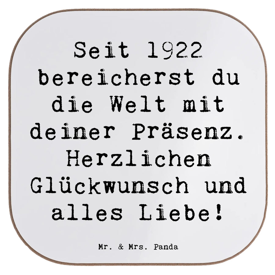 Square coaster Saying Seit 1922 bereicherst du die Welt mit deiner Präsenz. Herzlichen Glückwunsch und alles Liebe! - White