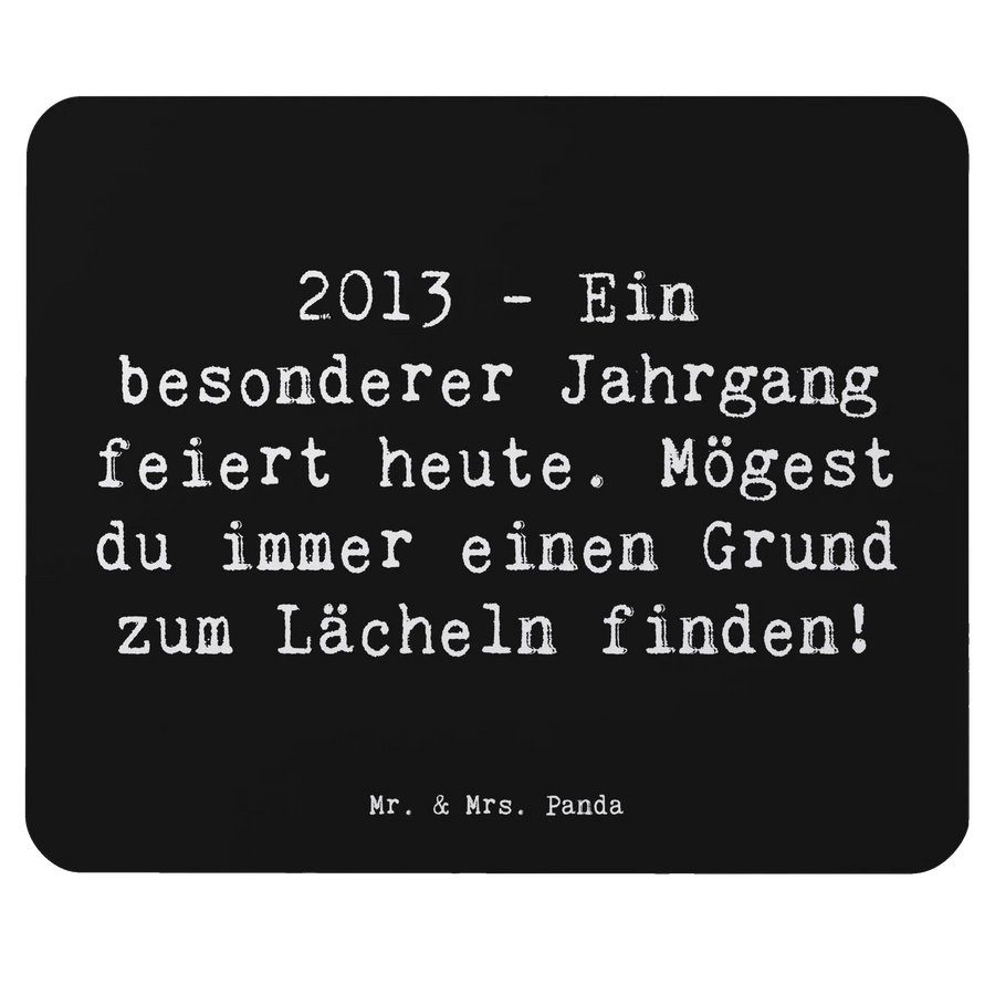Suchst du nach dem perfekten Geschenk für einen besonderen Menschen, der im Jahr 2013 geboren wurde? Dann ist das Mauspad mit dem motivierenden Spruch "2013 - Ein besonderer Jahrgang feiert heute. Mögest du immer einen Grund zum Lächeln finden!" von Mr. & Mrs. Panda genau das Richtige!