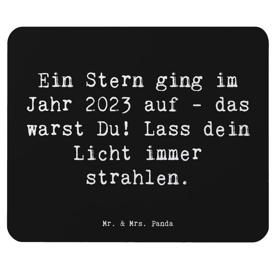 Das einzigartige Mauspad "Ein Stern ging im Jahr 2023 auf - das warst Du! Lass dein Licht immer strahlen." von Mr. & Mrs. Panda ist das perfekte Geschenk für alle, die im Jahr 2023 Geburtstag feiern. Es bringt nicht nur Freude in jedes Arbeitszimmer oder Homeoffice, sondern verbreitet auch eine positive und inspirierende Stimmung, während Du am Computer arbeitest!