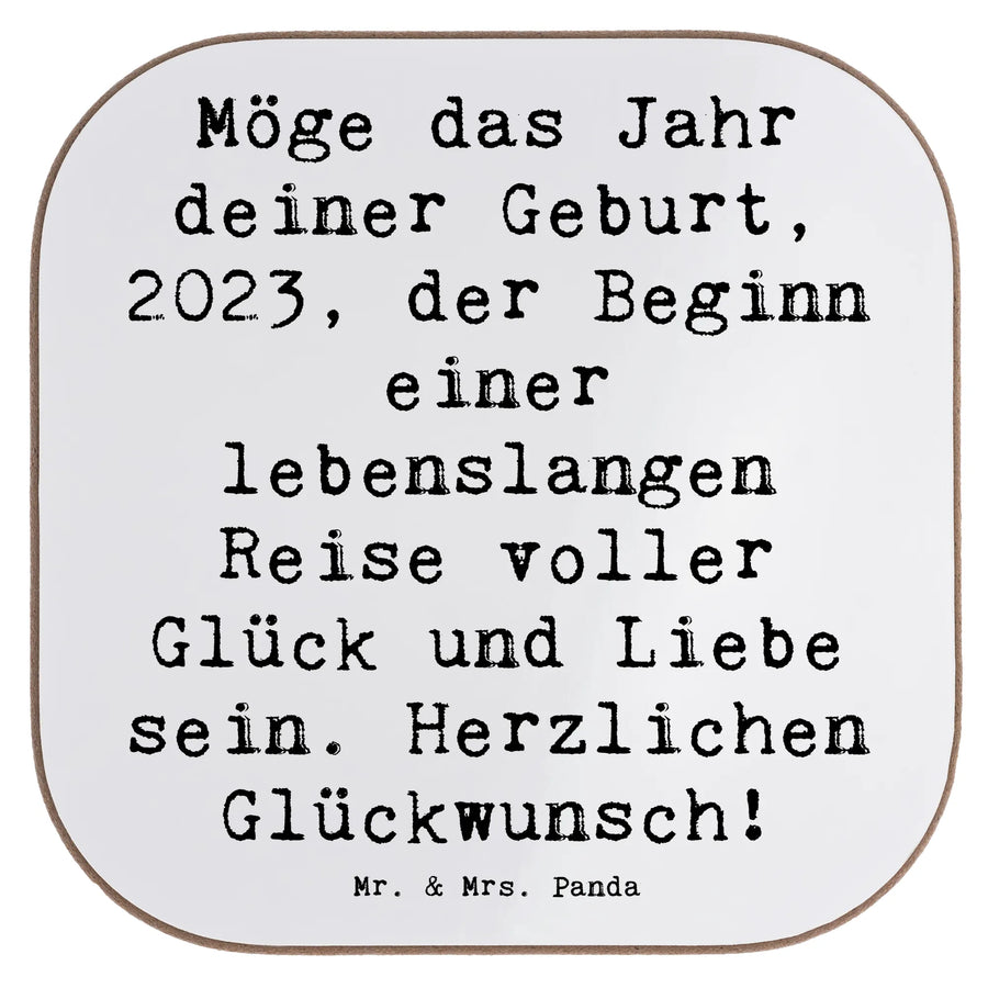 Square coaster Saying Möge das Jahr deiner Geburt, 2023, der Beginn einer lebenslangen Reise voller Glück und Liebe sein. Herzlichen Glückwunsch! - White