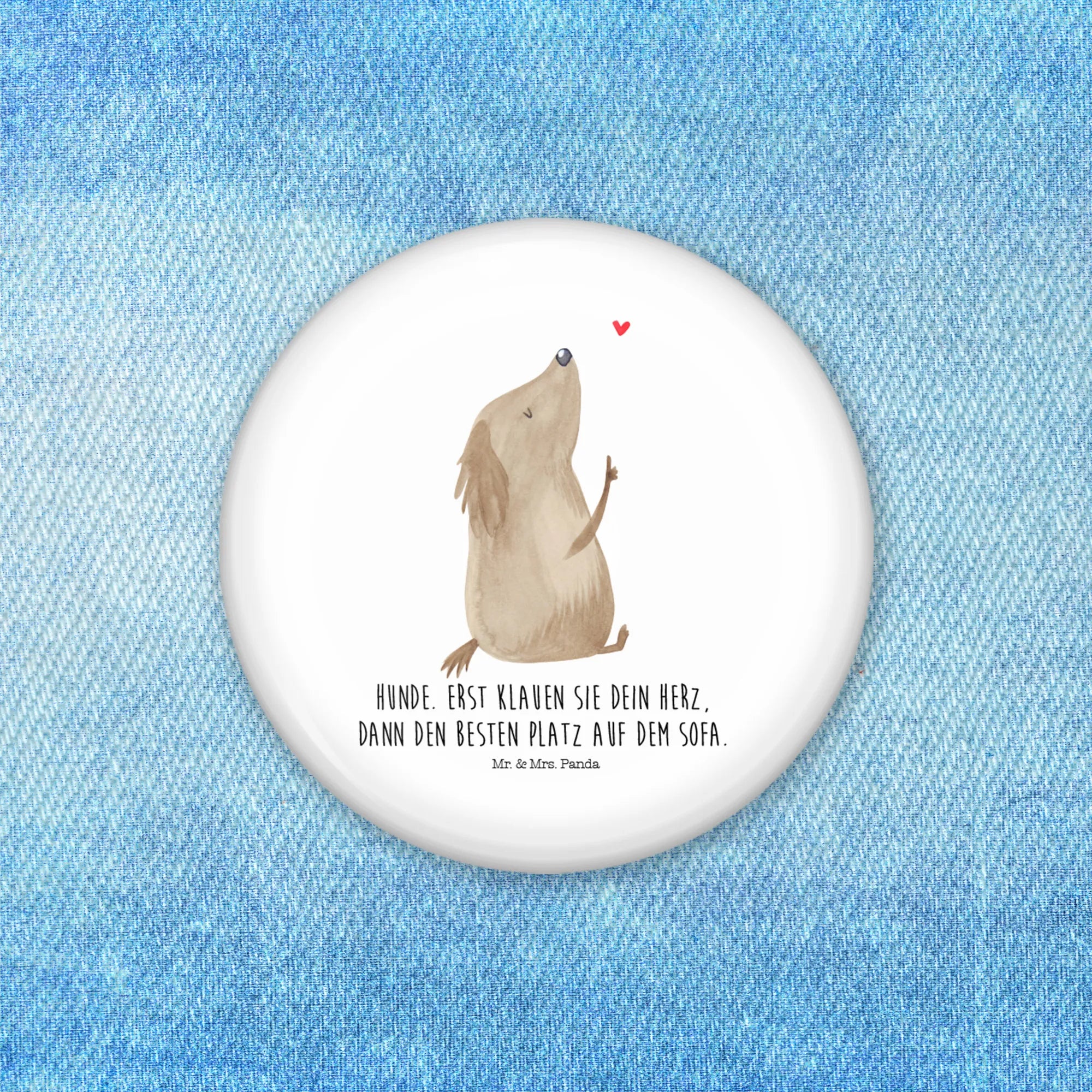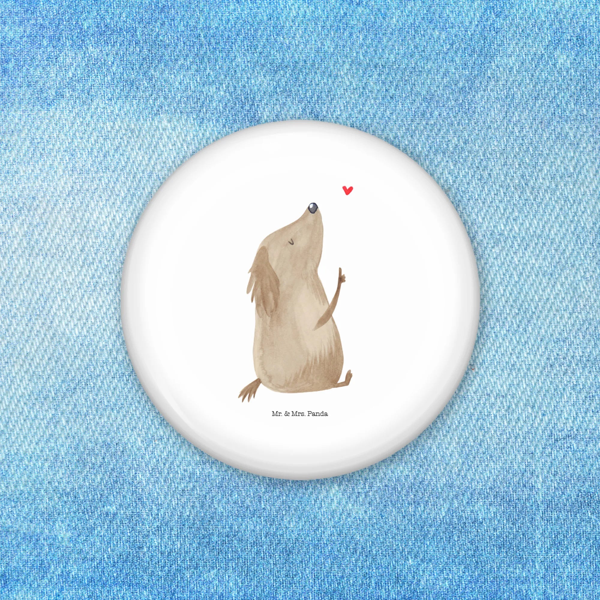 If you're looking for the perfect gift for a dog lover or a way to express your own adoration for our furry friends, the Mr. & Mrs. Panda Button featuring the delightful ‘Dog Love’ motif is just the ticket! With its charming design and heartwarming message, this 50mm button is an adorable addition to any dog lover's collection. The motif showcases a delightful and heartwarming depiction of a dog, symbolizing the love and joy that our canine companions bring into our lives.