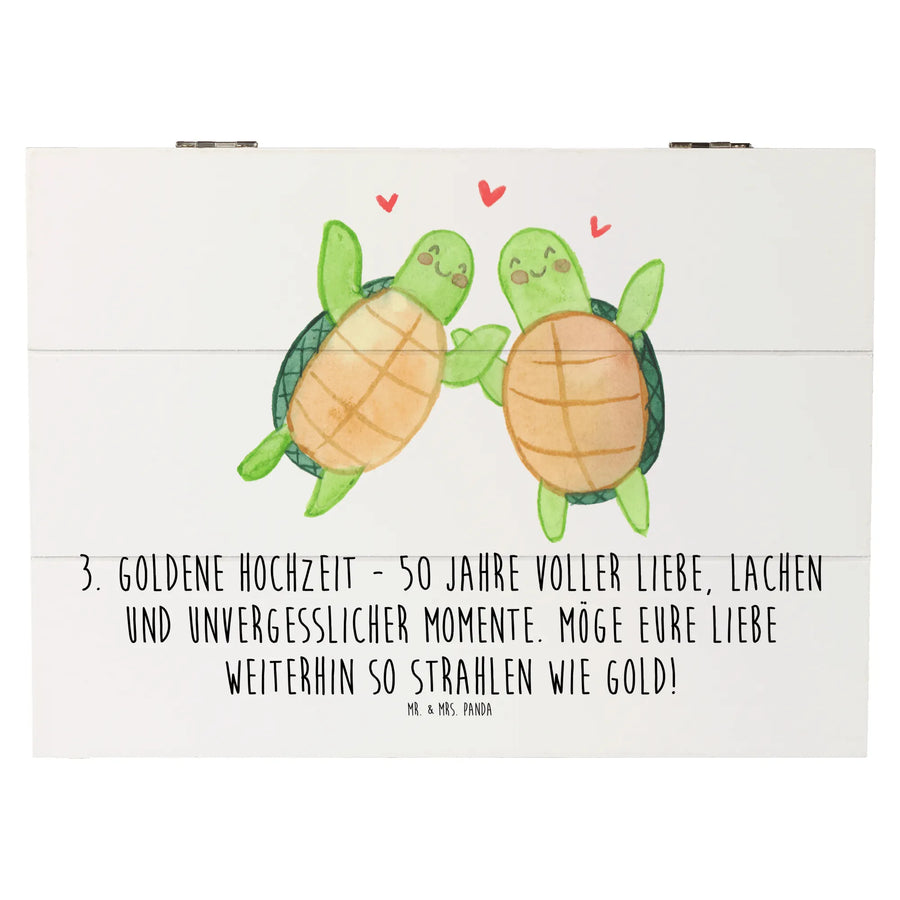 Wooden chest 3. Goldene Hochzeit - 50 Jahre voller Liebe, Lachen und unvergesslicher Momente. Möge eure Liebe weiterhin so strahlen wie Gold! - 25 x 18 cm - White