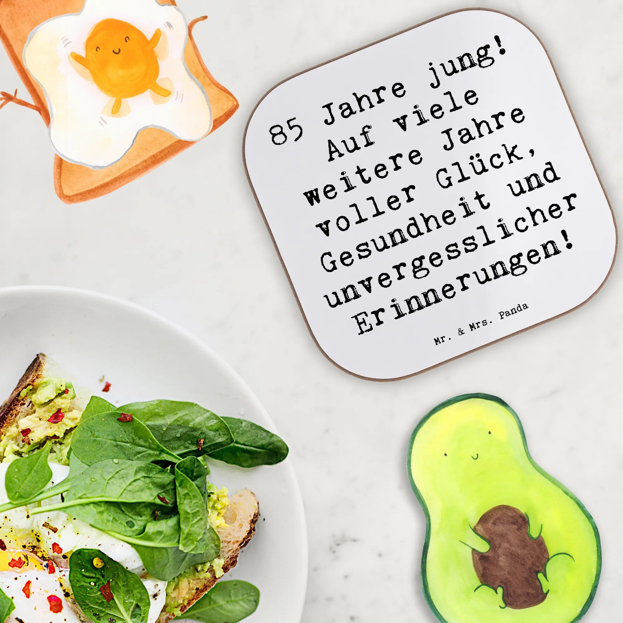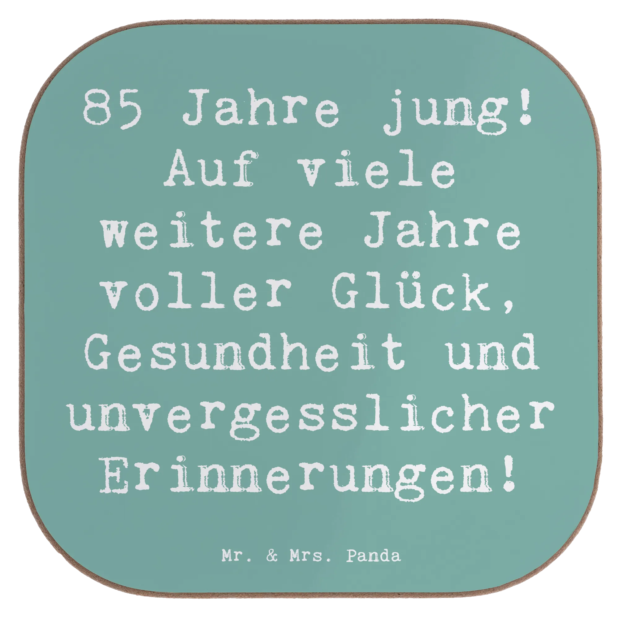 Square coaster Saying 85 Jahre jung! Auf viele weitere Jahre voller Glück, Gesundheit und unvergesslicher Erinnerungen! - Lavender Dream