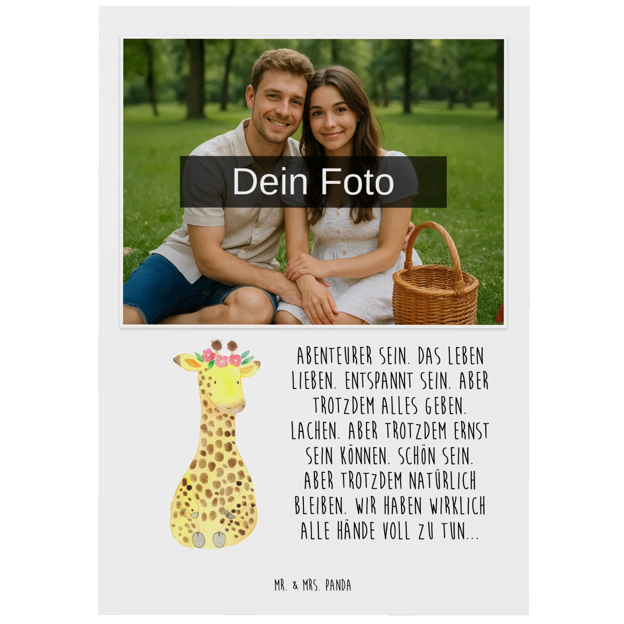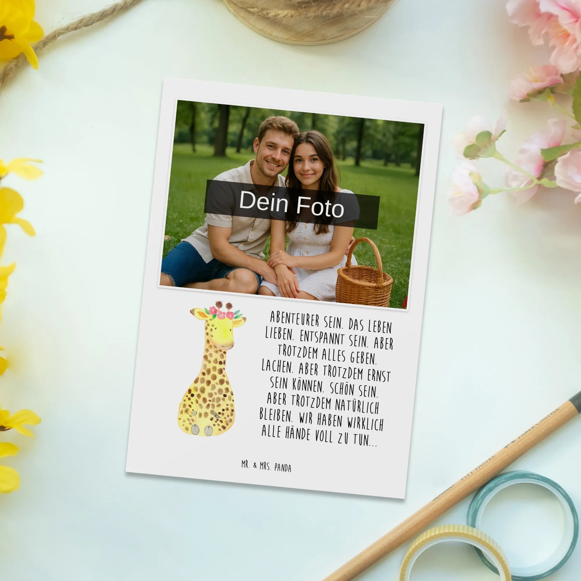 Personalized Photo Postcard giraffe flower wreath