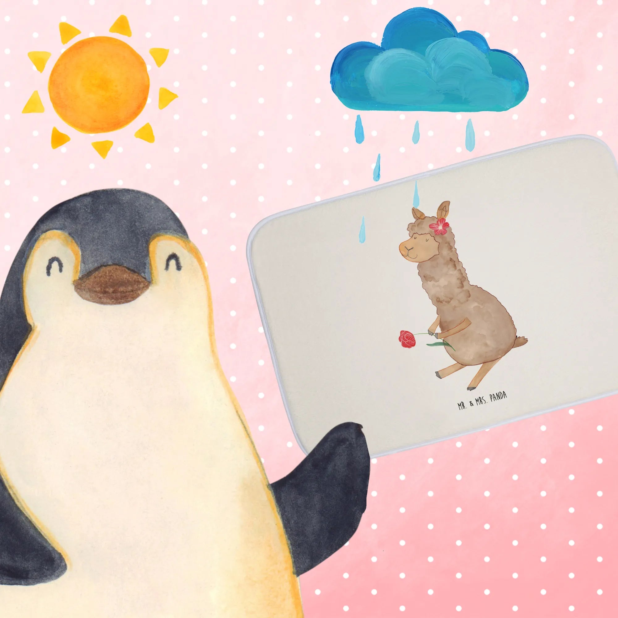 Introducing the delightful Bath Mat – Alpaca Flower from Mr. & Mrs. Panda! This gorgeous bath rug is not just a practical addition to your bathroom; it's a splash of joy and personality that transforms your space into a cozy sanctuary. Imagine stepping out of your shower onto the soft, fluffy surface of this premium polyester bath mat featuring our beloved alpaca motif surrounded by colorful flowers. It's like bringing a piece of the Peruvian highlands into your home, where cuddly llamas and dreamy bouquets remind you to embrace the beauty of nature.