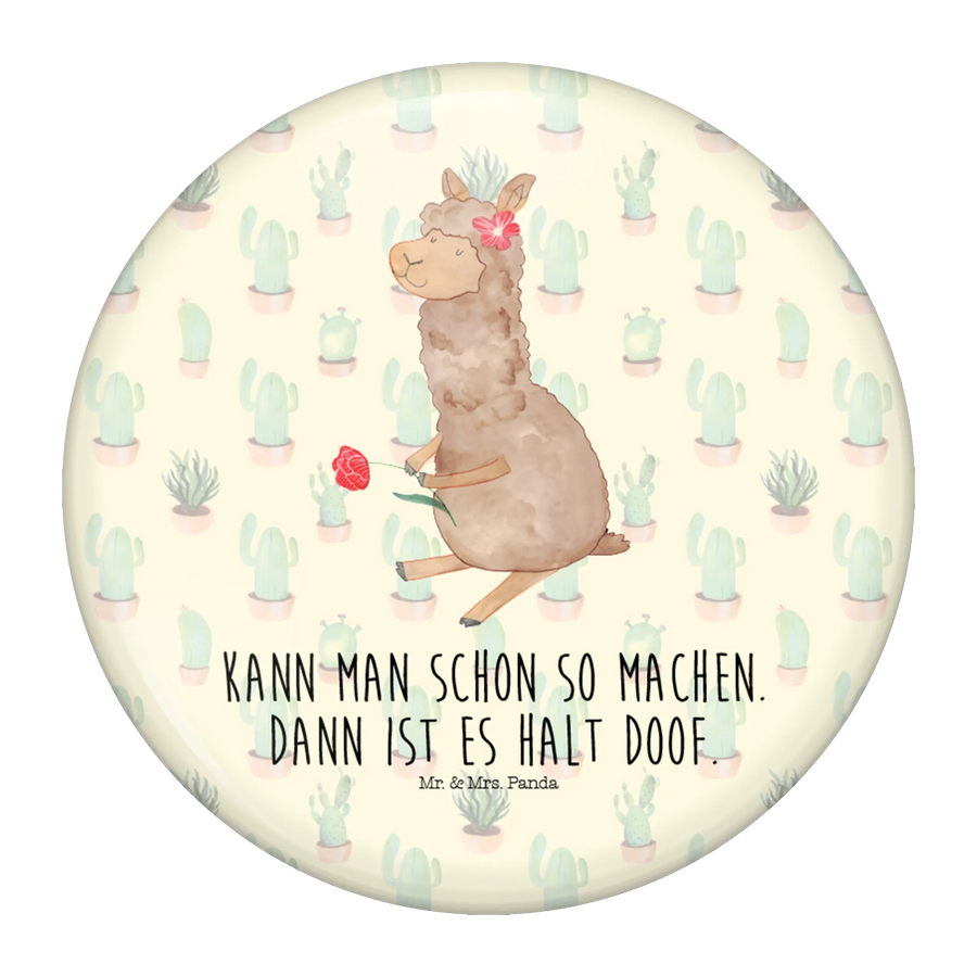 Introducing the delightful Alpaca Flower Button from Mr. & Mrs. Panda! This charming 50mm button features an adorable alpaca with a flower gracefully nestled in its hair, paired with another vibrant bloom in its hand. A quintessential accessory for individuals who have a soft spot for these fluffy creatures, particularly for those in love with the whimsical beauty of alpacas and llamas!