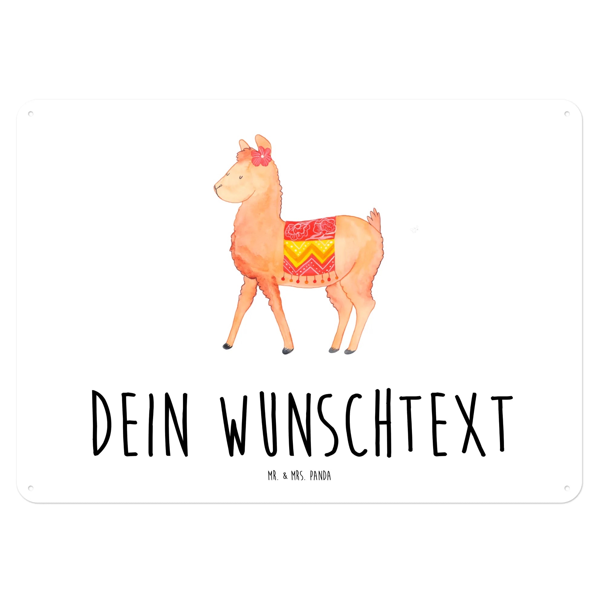 Das personalisierte Blechschild "Alpaka stolz" von Mr. & Mrs. Panda ist das perfekte Geschenk für alle, die ihren Einrichtungstil mit einem Hauch von Persönlichkeit bereichern möchten. Dieses edle Metallschild zeigt ein wunderschönes, handgezeichnetes Alpaka, das stolz seine süße Schleife präsentiert.