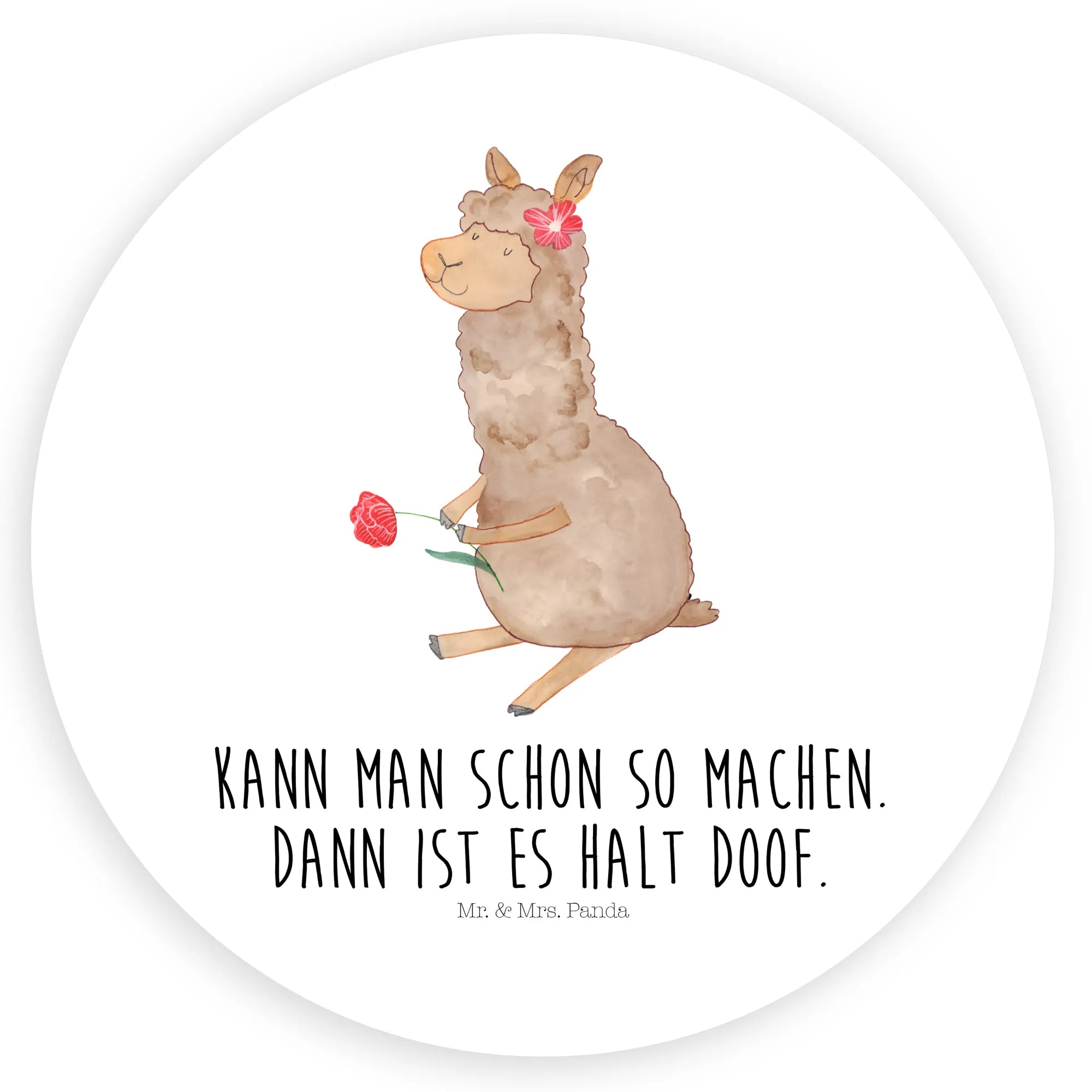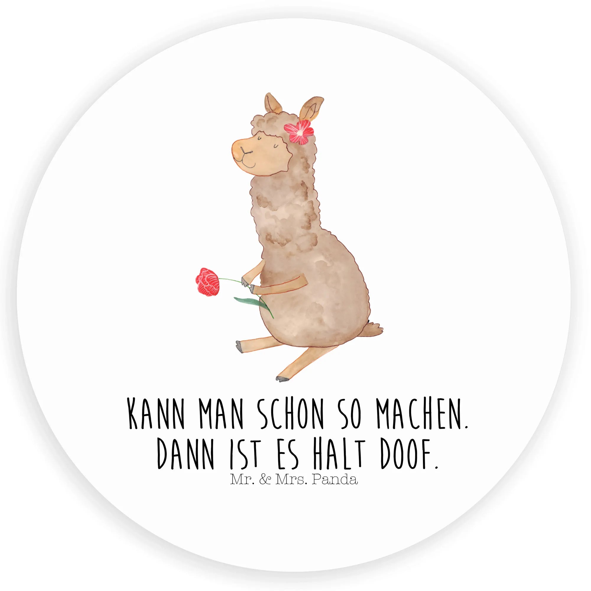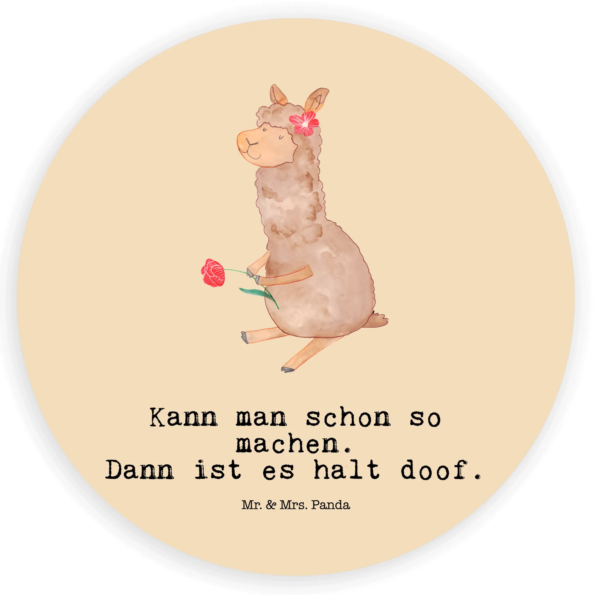 Der 120mm Rund Aufkleber von Mr. & Mrs. Panda mit dem Motiv Alpaka Blume bringt sofort gute Laune. Ein flauschiges Alpaka trägt eine Blume im Haar und hält eine zweite Blume in der Hand – kombiniert mit dem frechen Spruch „Kann man schon so machen. Dann ist es halt doof.“ Dieses liebevoll gezeichnete Motiv ist typisch für die Alpaka Kollektion von Mr. & Mrs. Panda und verbindet Charme mit Humor.