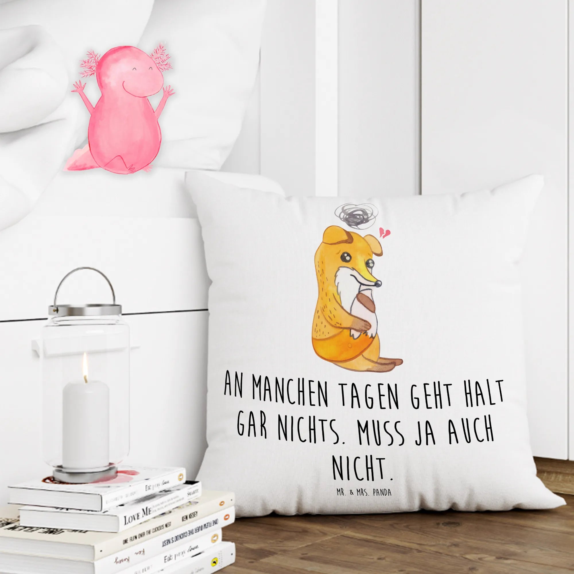 When you look at our motif featuring Lasse Baguette the fox, you may feel a connection. It captures a moment many face—a time when everything seems overwhelming. Just like Lasse, we all have days where we can’t seem to find our way out of the shadows. 'An manchen Tagen geht halt gar nichts. Muss ja auch nicht.' It's a gentle reminder that struggling is part of being human, especially for those who navigate life with a unique challenge. Mrs. Panda, with her background in caring for those with disabilities, knows firsthand that within each struggle lies untouched strength. The motif serves as a beacon of hope for those who feel lost, reminding us that we all can shine through the darkness, simply by recognizing that even in our lows, there are strengths that emerge. Let’s walk this journey of understanding together, embracing the uniqueness of every individual and the light they bring into the world.