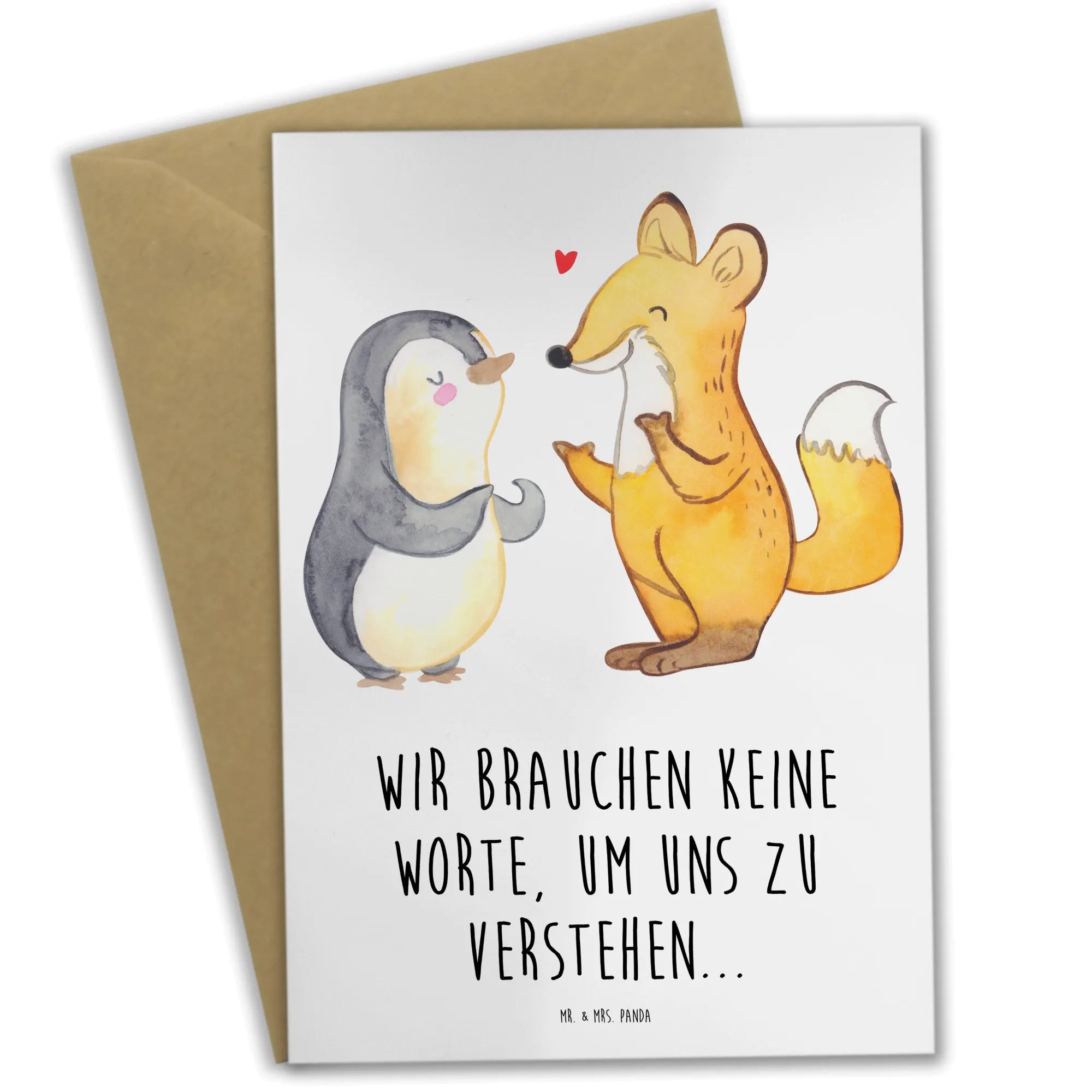 Greetings card Fox & Penguin deaf - Yellow Pastel