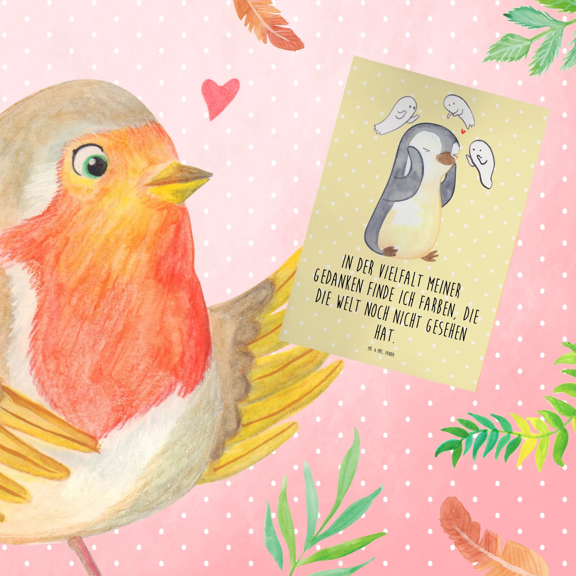 Greetings card Penguin Schizophrenia - Pastel Yellow