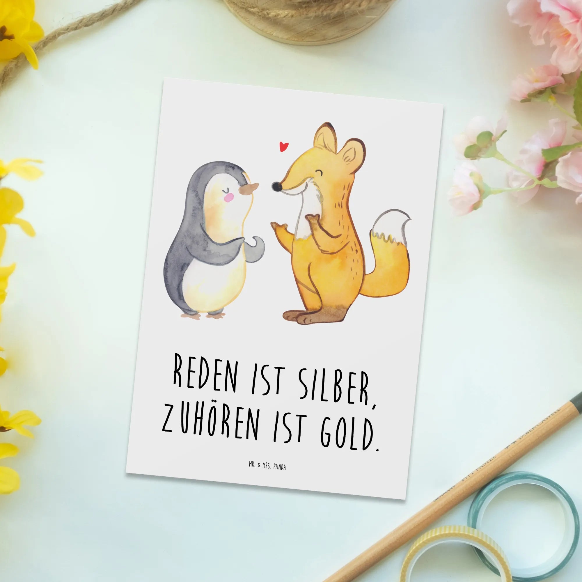Embrace heartfelt connections with this adorable postcard from Mr. & Mrs. Panda! With dimensions of 150 mm x 100 mm, it showcases playful designs along with engaging quotes that will warm any heart. Made from high-standard cardstock, the glossy front captures attention, while the matte back gives you ample space to write your personal messages. Ideal for birthdays, weddings, or simply to say thank you, this postcard is a perfect little gift for your loved ones to brighten their day!