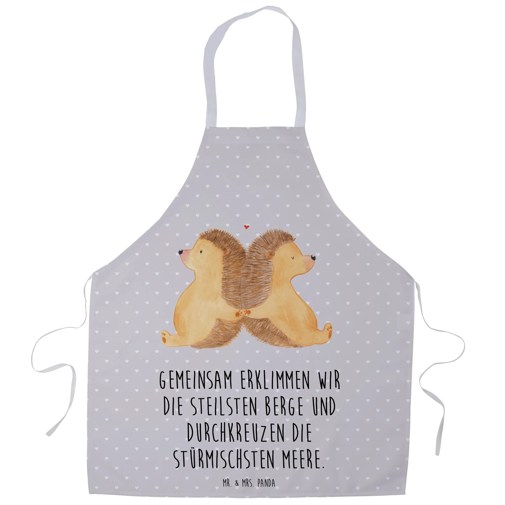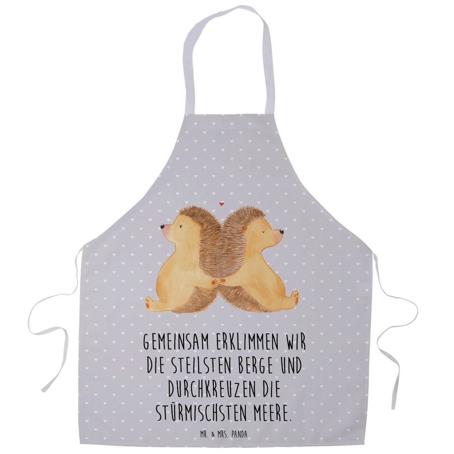 Apron Hedgehogs holding hands - with saying - Pastel Gray