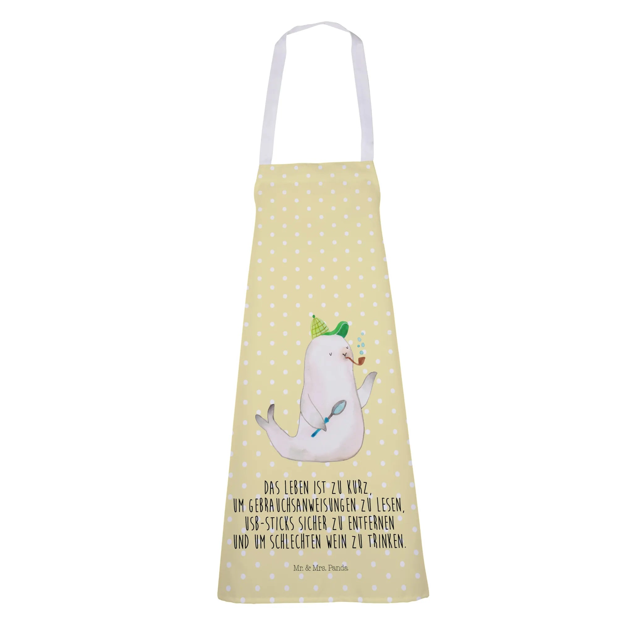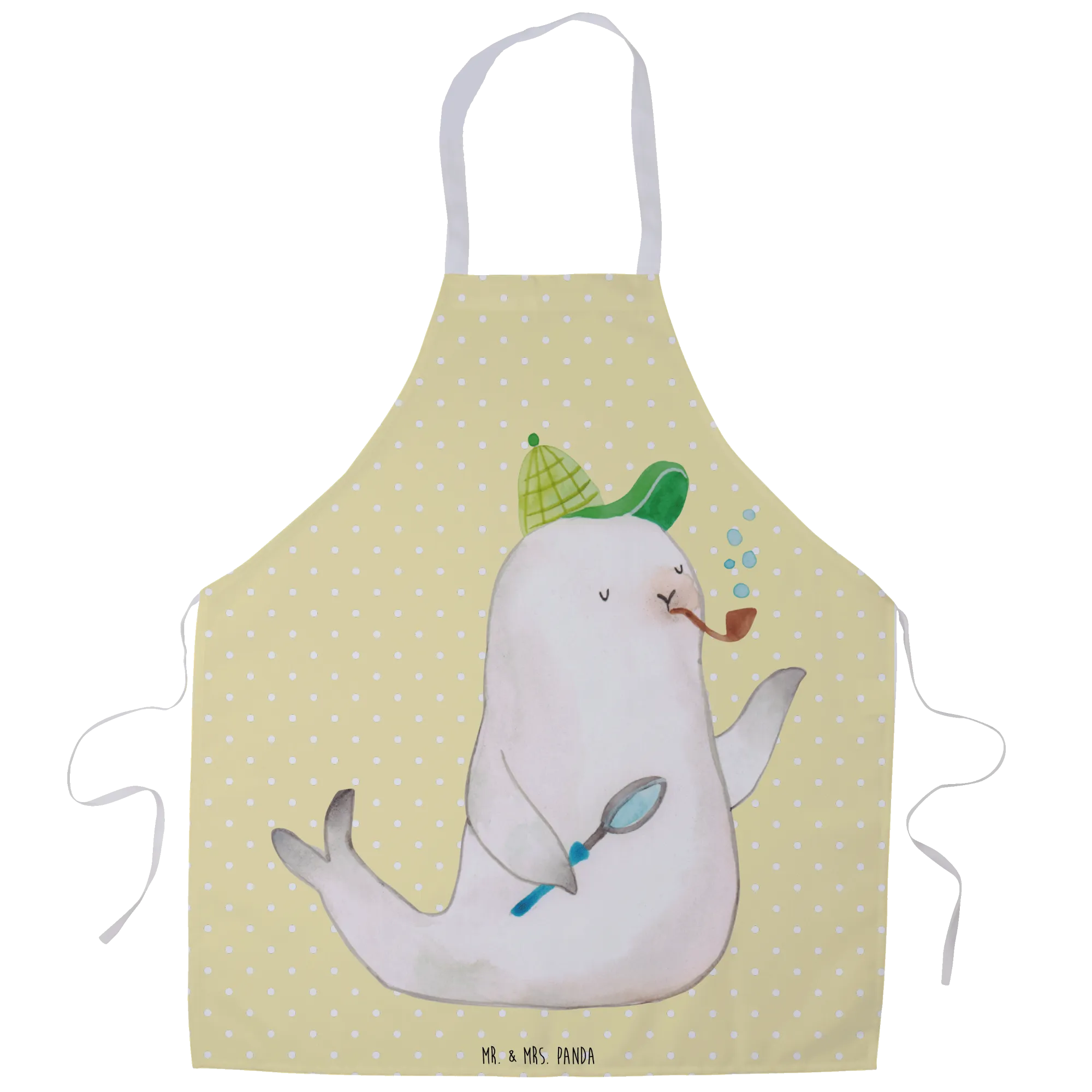 If you're on the lookout for a delightful and whimsical gift for the animal lover in your life, then look no further than the Mr. & Mrs. Panda Sherlock Seal Apron! This adorable kitchen companion is not just practical but also brings a touch of happiness and charm to any cooking or baking experience. The design features our charming detective seal, Sherlock, who is ready to tackle any culinary mystery with a sprinkle of fun and a dash of creativity!