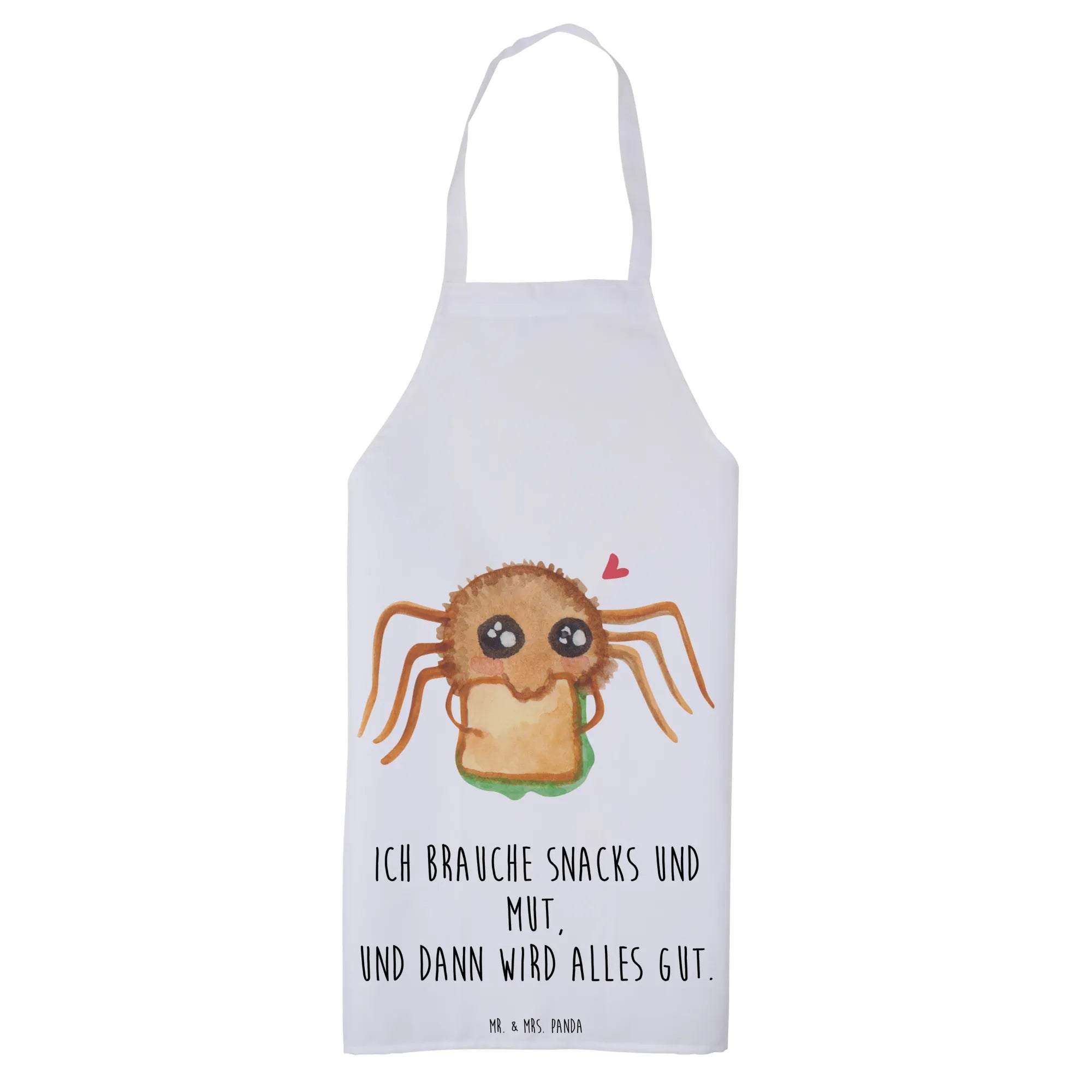 What truly sets this apron apart is the delightful motif of Spider Agathe! Hand-drawn by Mrs. Panda, she embodies joy, courage, and a passion for snacks. Picture Agathe, the cute spider, happily munching on a scrumptious sandwich, reminding you to embrace the small pleasures in life. The accompanying sentiment beautifully encapsulates the spirit of this apron: "I need snacks and courage, and then everything will be fine." It's a perfect reminder to fuel your culinary creativity with joy and good food!
