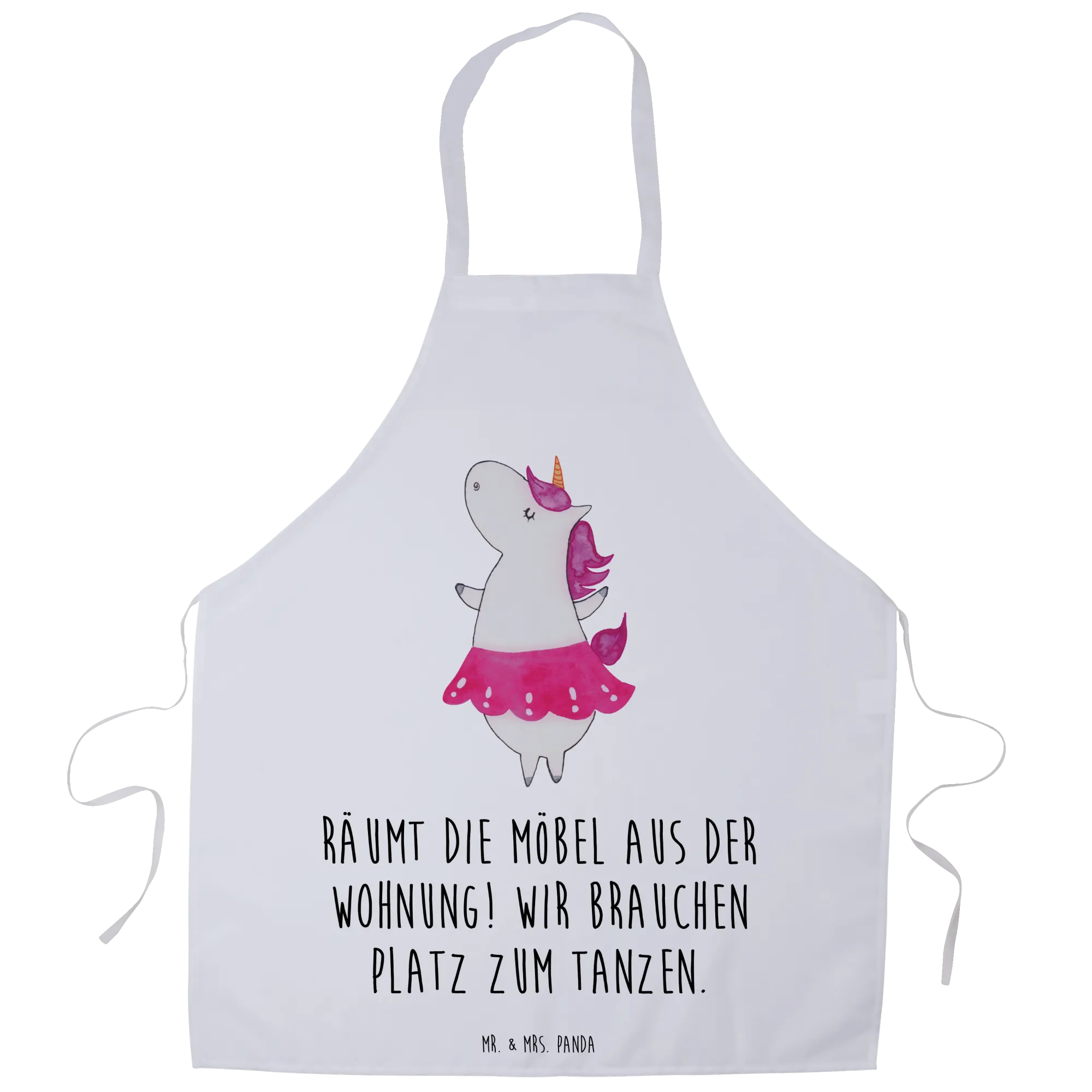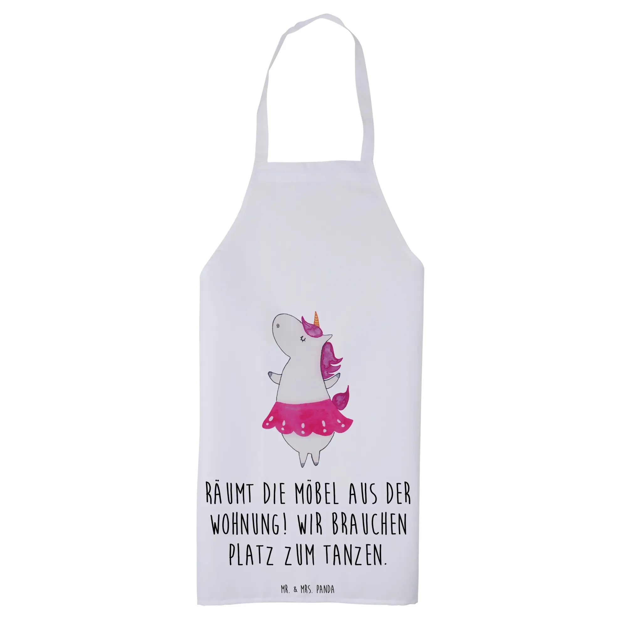 And let’s not forget the mantra of our adorable unicorn ballerina: "Räumt die Möbel aus der Wohnung! Wir brauchen Platz zum Tanzen!" — reminding everyone to clear the space for fun and dancing! So whether you’re flipping pancakes, preparing cupcakes, or hosting a mini ball in your kitchen, let this apron remind you of the joy of creativity and the power of imagination.