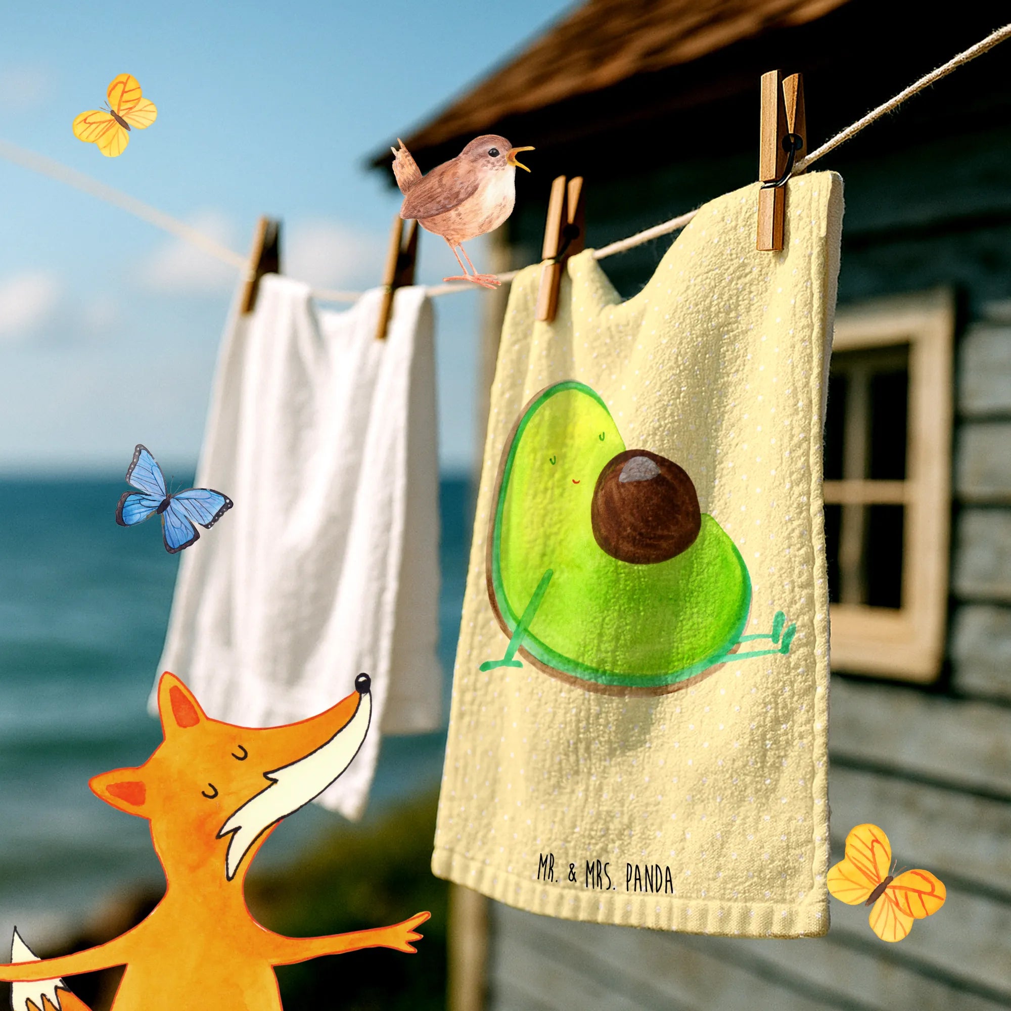 It features a lovingly illustrated design of a sweet avocado sitting proudly, gazing at its round ‘seed’ tummy, symbolizing the miracle of life. It evokes happiness and warmth, perfect for any bathroom setting. Made from a soft and fluffy cotton blend, this hand towel is designed to pamper your skin. Its extra-soft texture makes it ideal for your daily facial care routines, while its vibrant colors inject a delightful touch to your decor.